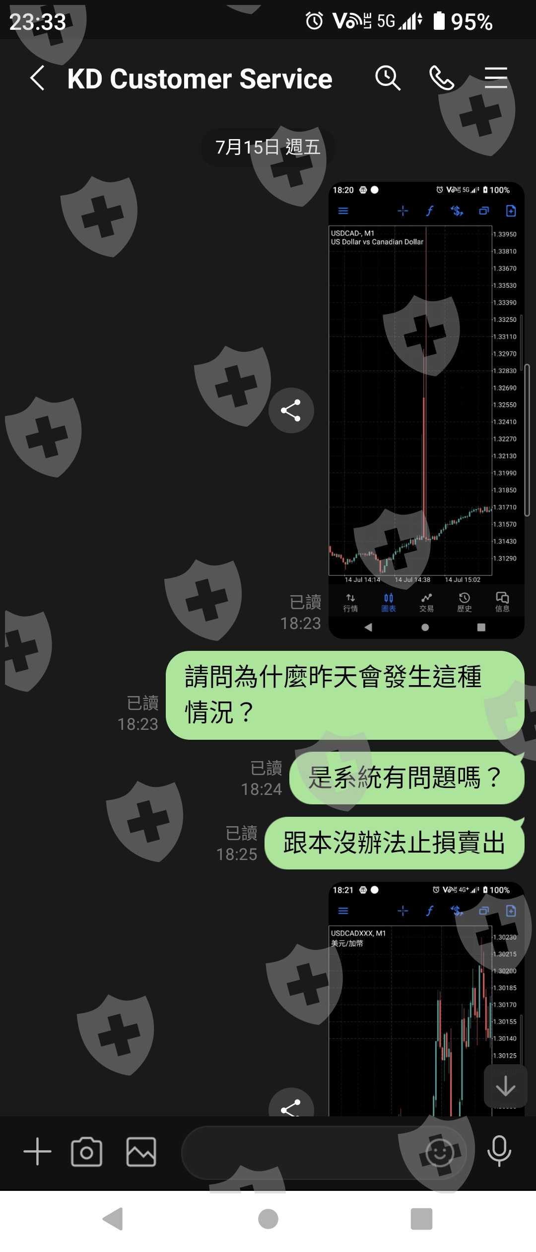 在2022年7月14日當天發生嚴重滑點,1秒直接爆倉,透過管道查詢另外兩家的交易商,同樣時間點都沒這種情況,跟客服反應,客服認定是個人問題,將其他交易商同時間的交易圖給他們,請他們提供解決方案,都已讀不回,最後直接封鎖我