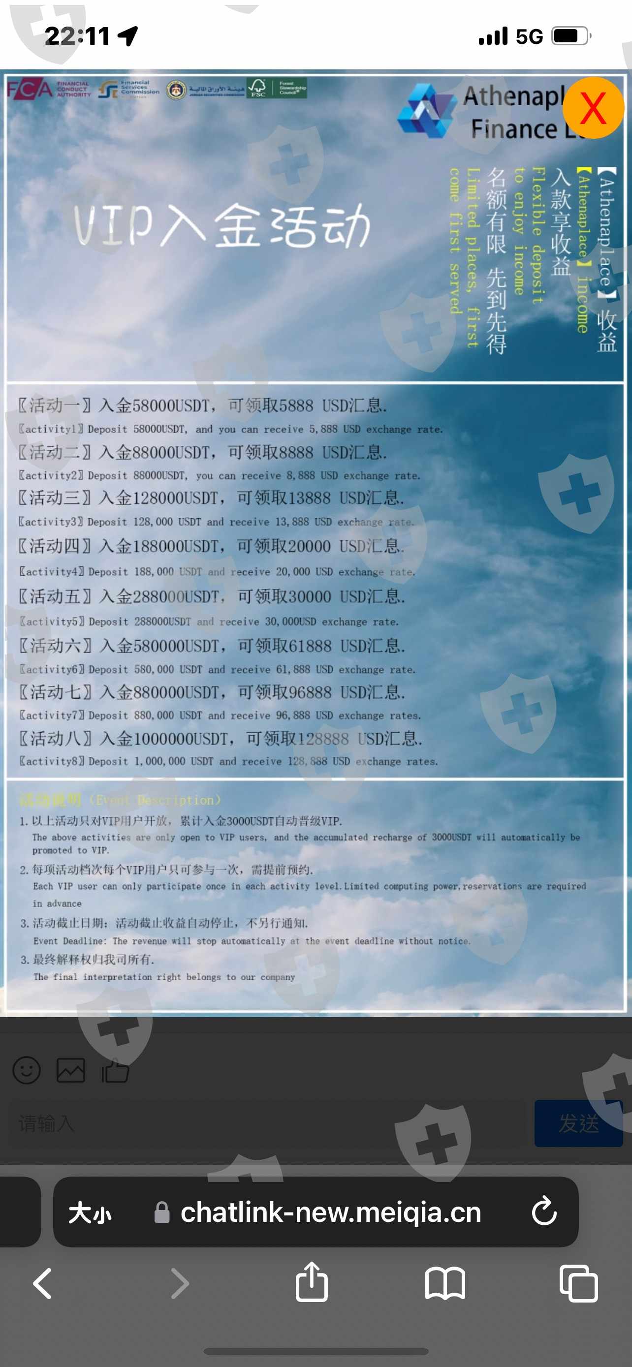 第一次小額獲利後,有申請出金提領成功,所以後續就沒有多疑的繼續入金操作。某天,此網友請我詢問客服是不是有一個黃金帳戶的專屬活動,網友建議我先參加88,000美元活動搶佔名額,因門檻太高,一度猶豫是否要參加。後來網友說,如果真的不夠,他可以協助一些,等達標再提領歸還給他就好。