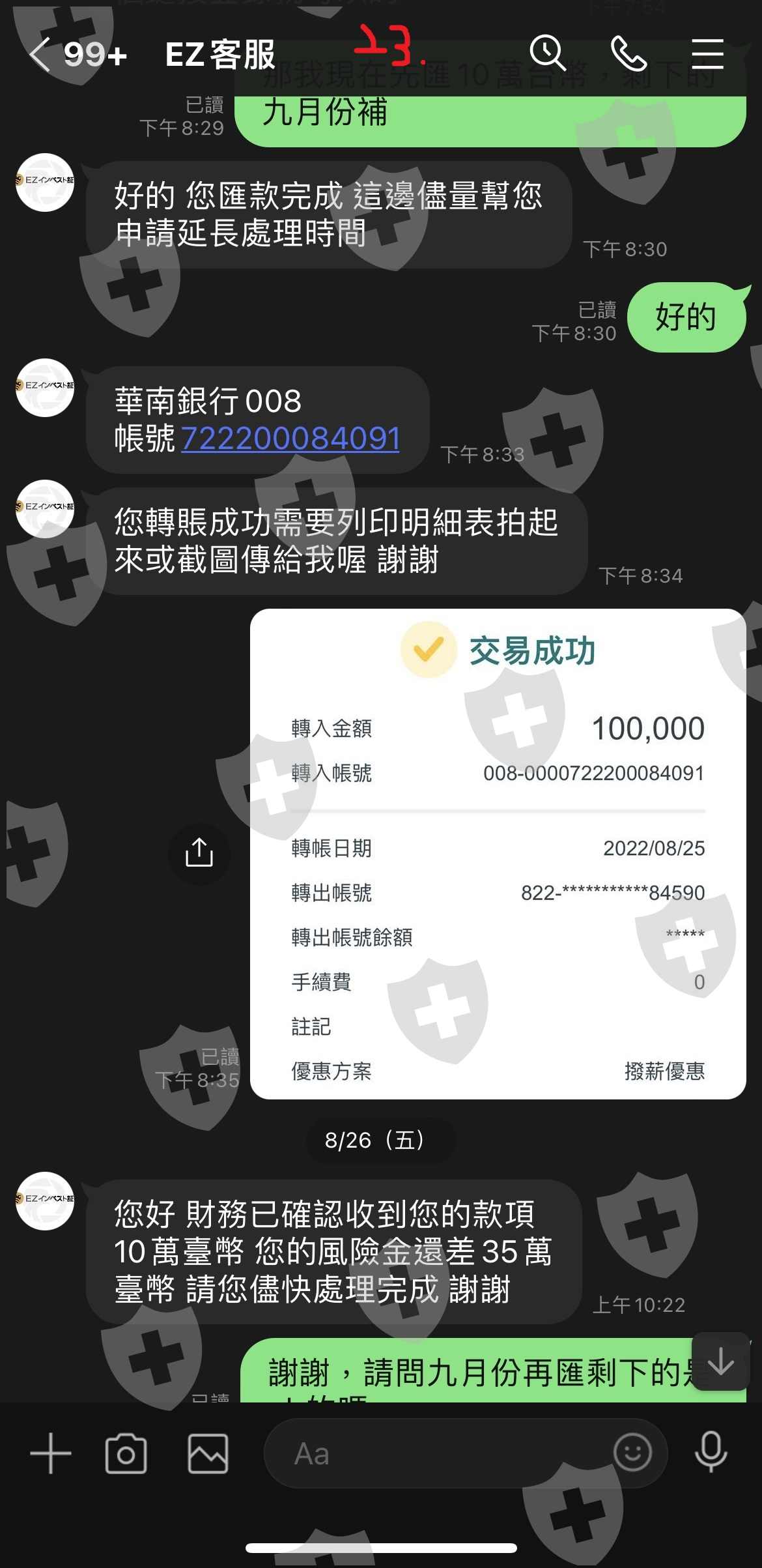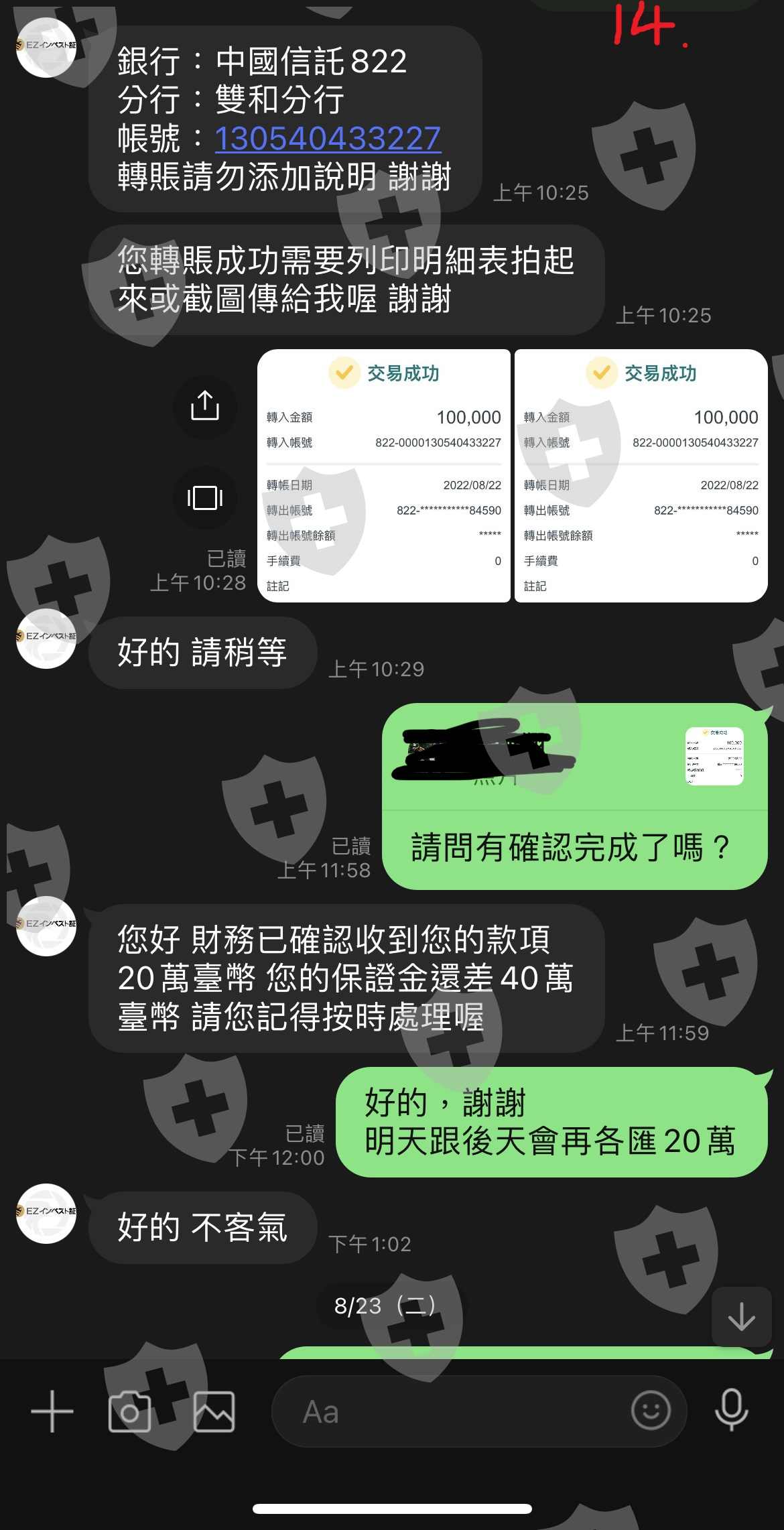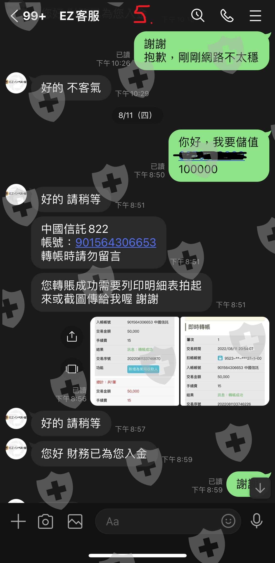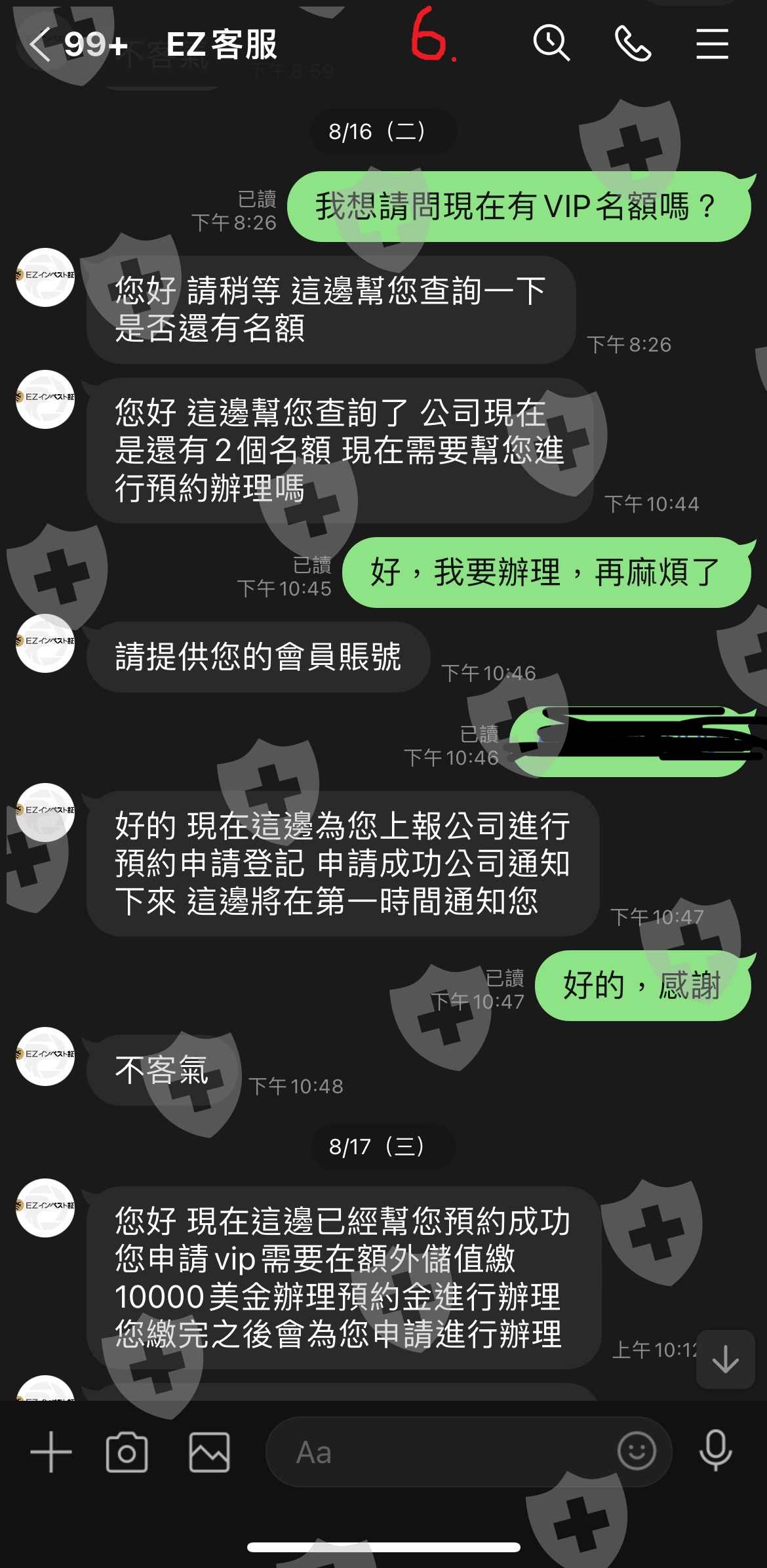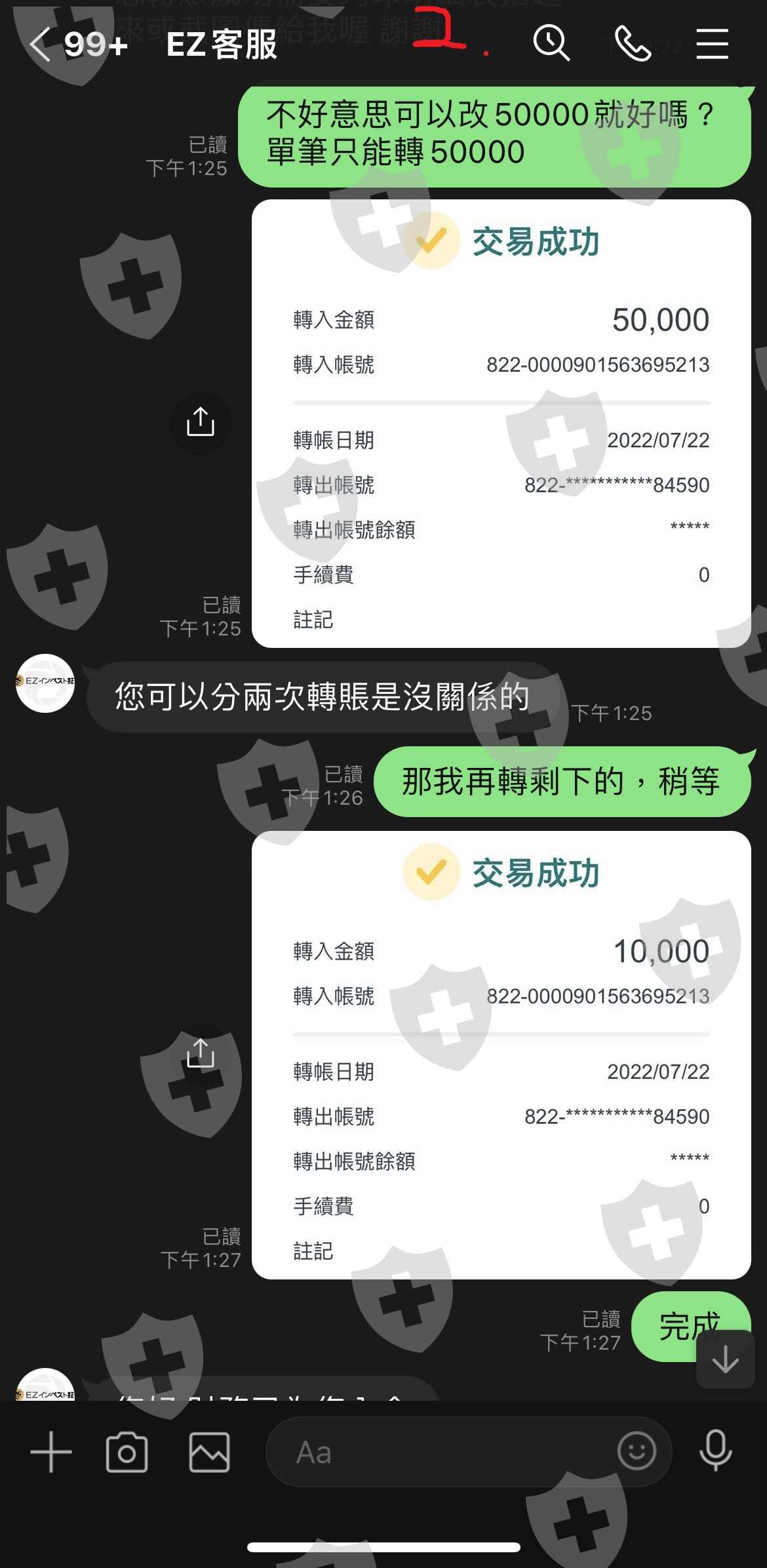 最初因為申辦帳戶VIP及解決凍結帳戶問題已繳一大筆錢,之後又說是我的帳戶有問題無法出金我所需要的金額,需要先出清所有帳戶內款項並擅自交由錢莊匯款,後來又說錢莊要求繳交確認金才能匯款,最後詢問繳交問題卻都已讀不回