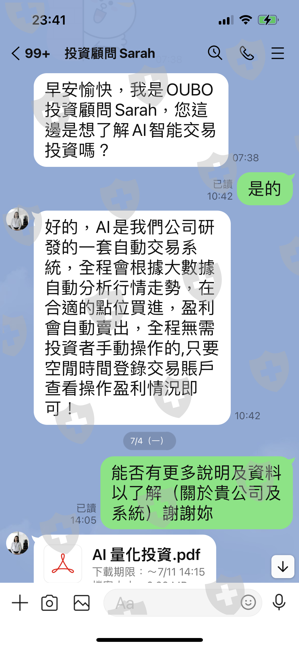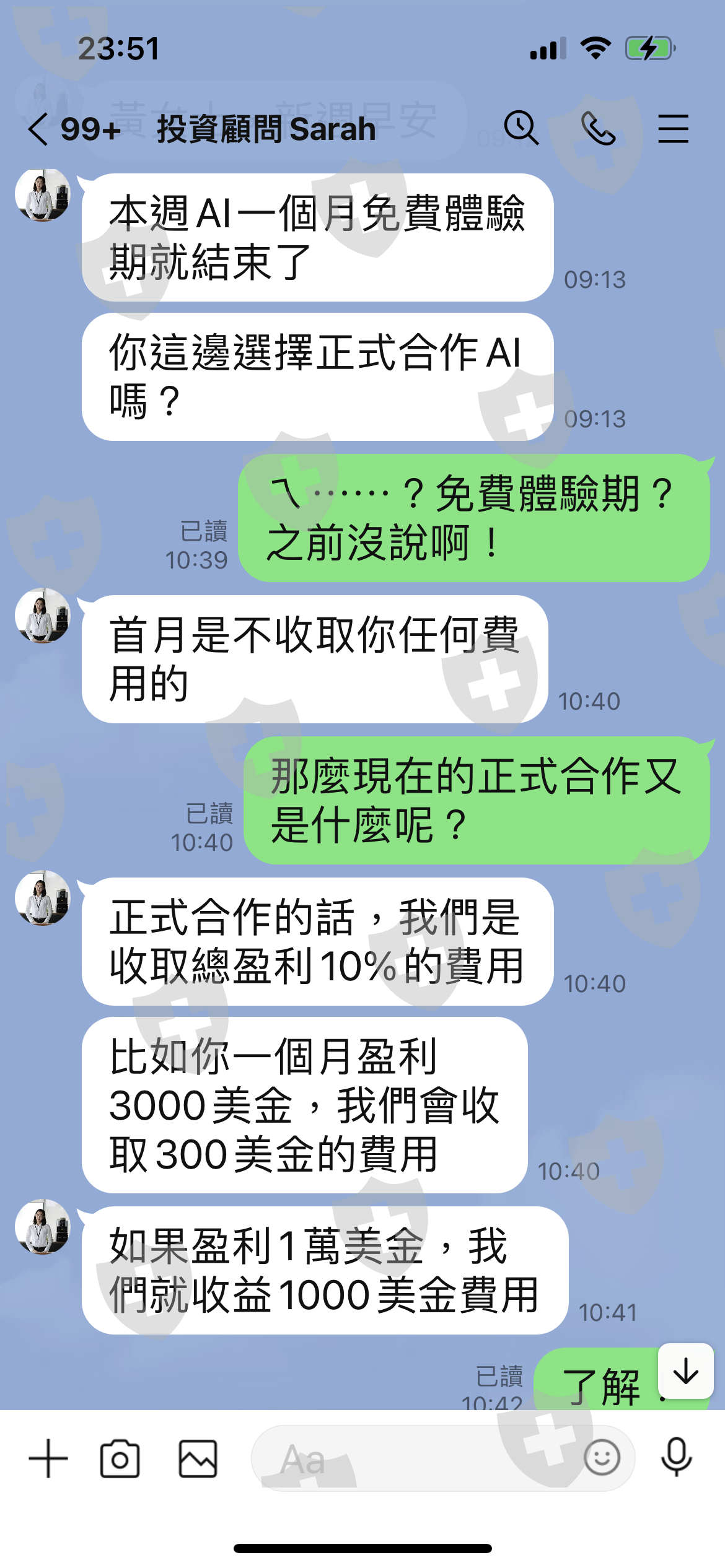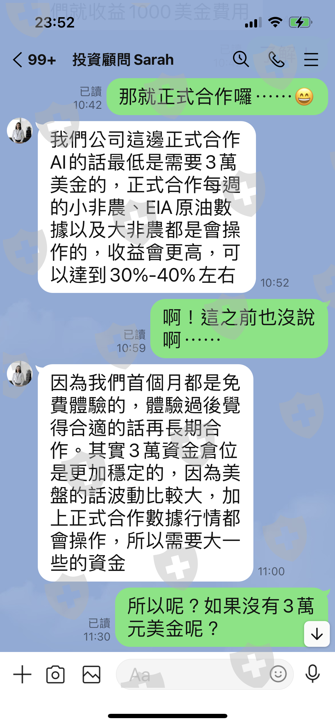 Oubo 不實廣告,大打他們的AI智能投資,屬於穩健獲利型,最重要的是風險把控為首位,誘騙投資者先加入體驗,等加入一個月後才告知必須增加資金到3萬美元,才能加入正式版AI,但先前從未告知什麼體驗版及正式版。第一個月先小手數操作,讓你少量且穩定獲利,一個月後就不斷鼓吹加金才能加入正式合作。我評估過後無法再注金,所以被告知只能繼續用體驗版,結果AI智能操作突然加大手數到3去交易,且未設止損,直接讓你爆倉。