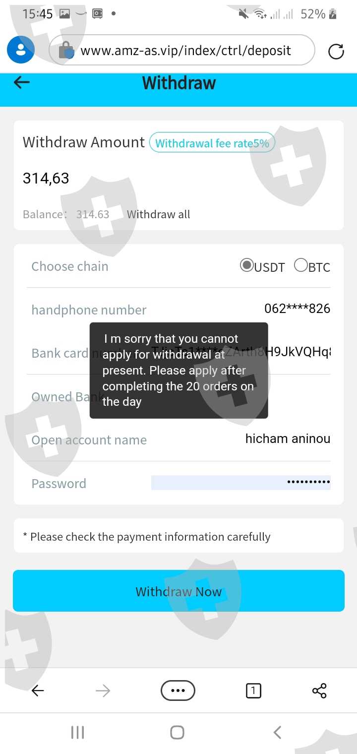 I have a $300 account in this link ( https://www.amz-as.vip/ ) but they do not allow me to request my withdrawal they ask me to fill in $600 and do 20 requests in 24 hours and when 5 requests arrive they ask me to recharge please I desperately need your help please