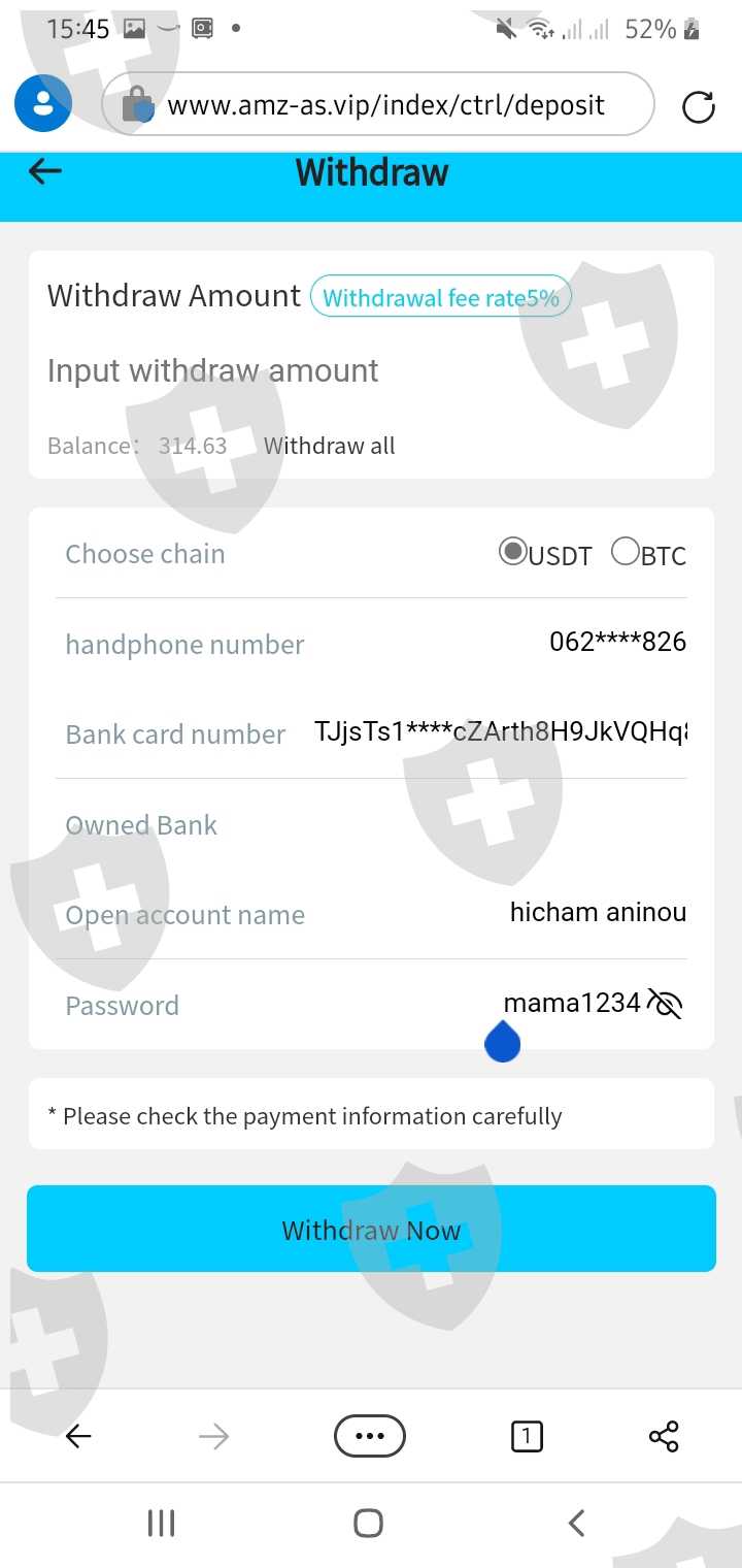 我在此链接(https://www.amz-as.vip/)中有一个300美元的帐户,但是他们不允许我申请提款,他们要求我缴600美元然后在24小时内做20个请求,当第5个请求到达时,他们要求我充值,我非常需要你的帮助