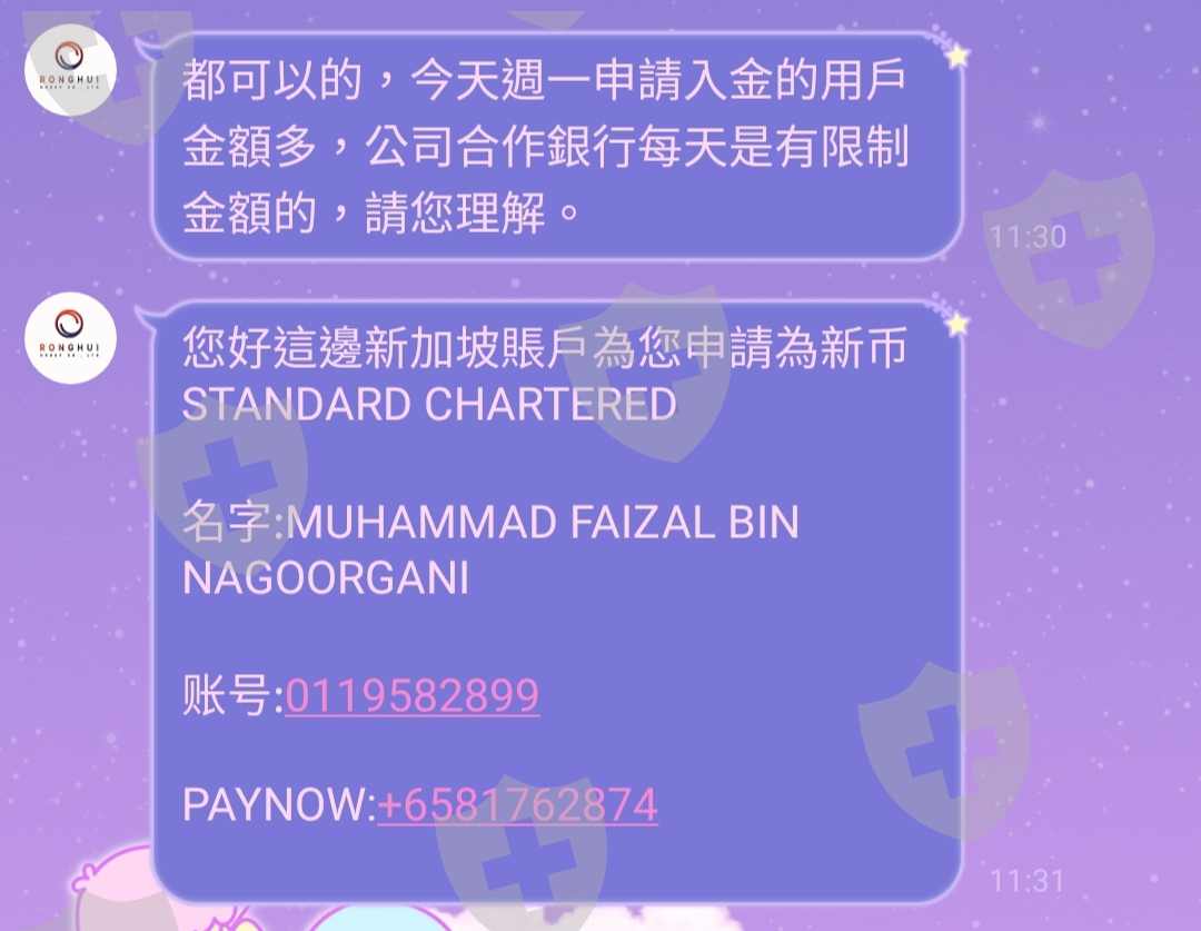 9/9被推薦人推薦說,他現在的外匯是很難的機會,他知道過去我輸掉一筆錢,他想要幫我理財規畫,慢慢賺些錢回來。 當時他說雖然最低門檻是一萬元美金,但我可以先預約金額10000美元,然後分次入金,所以我就先入金1000元美金。 後來由於看到網路上的報導,跟他所跟我說的話一模一樣,所以我確定他是詐騙集團,並且官網時常登不進去,但時間已晚,我已投下$ 1000美元目前也這樣不知下落。 我只求如果還有機會的話能拿回來這筆錢,也希望不要再有更多無辜的人收到欺騙。