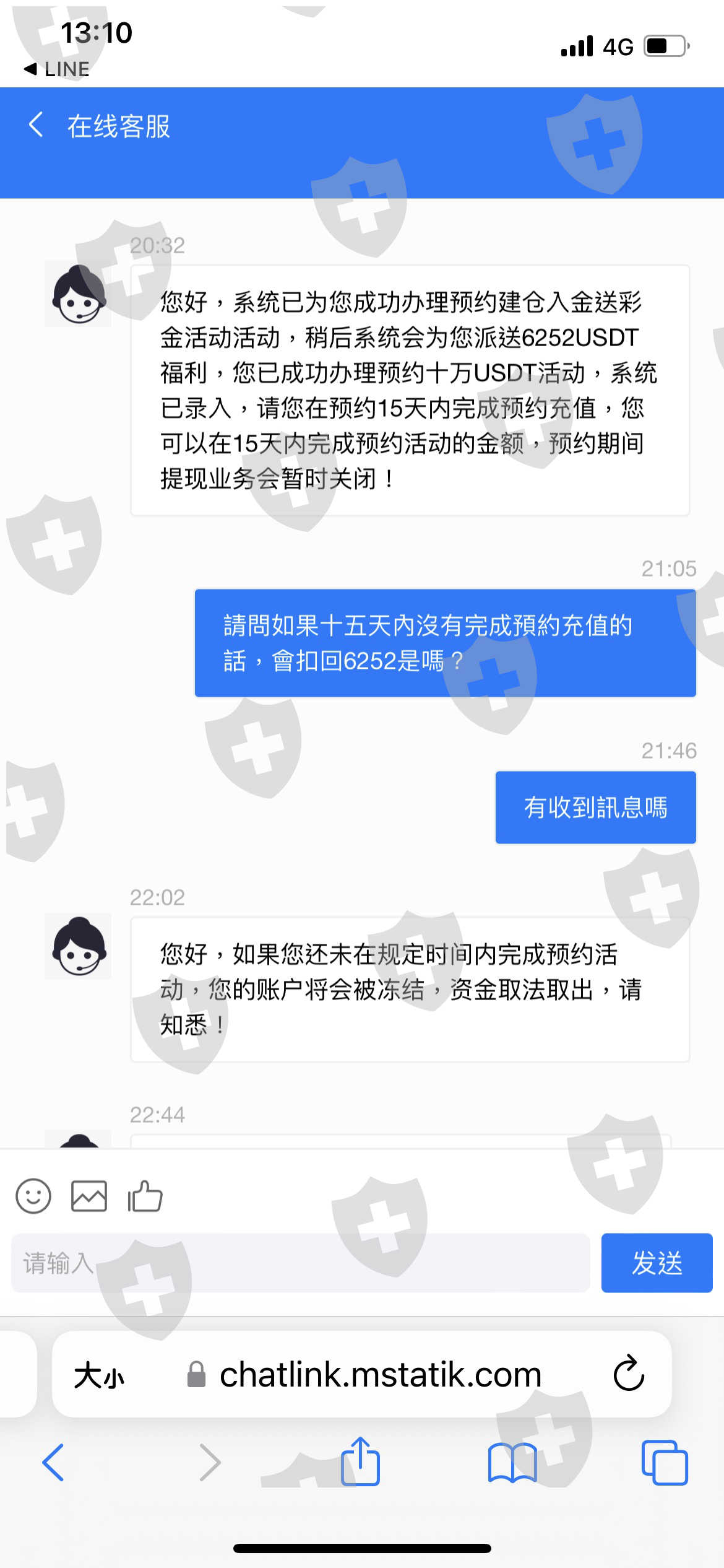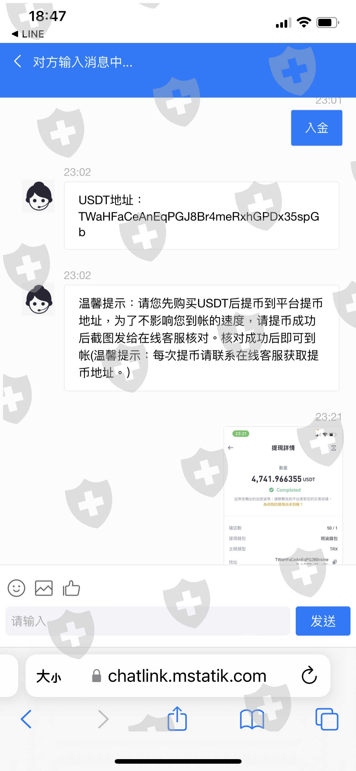 網友以交往為由,之後看我生活辛苦一直說要教我投資,說他在投資黃金指數這方面能力很好,誘導我買幣投資,前兩次都有小賺也有出金,第三次一直慫恿我要加入到一萬美金,但我加入到七千多美金時覺得不對勁想出金,客服卻回覆系統繁忙為由拒絕出金,後面網友又一直說要再交易才能出金並誘導我參加入倉活動,但是客服告知活動沒達成就會被凍結帳戶無法出金,前面規則並沒有說明清楚,因為對這個領域完全不懂,都是聽信網友步驟指示操作