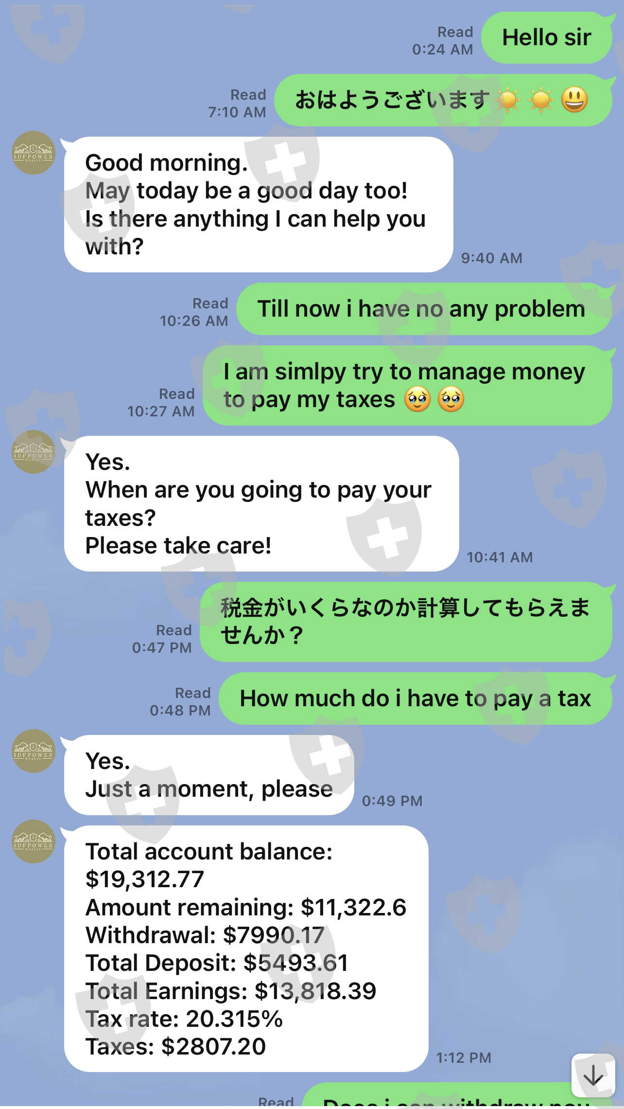 该公司有英国监管,也有日本监管,使用相同的许可证号,我已经进行了两次提款但是当我谈论它时,我没有更多的钱可以纳税了,他们阻止了我