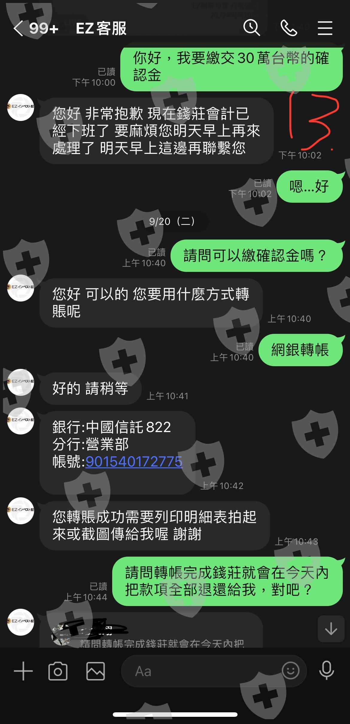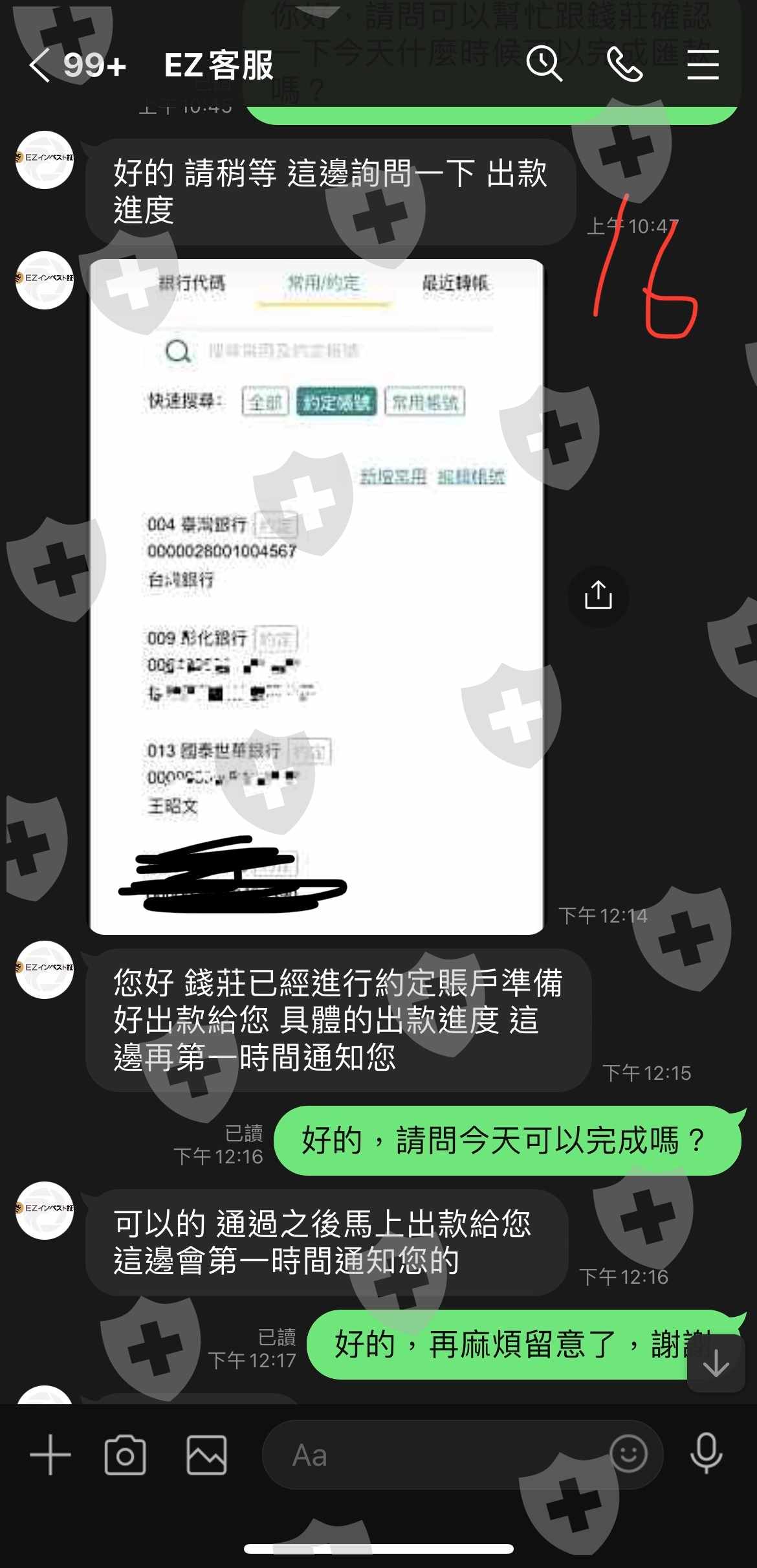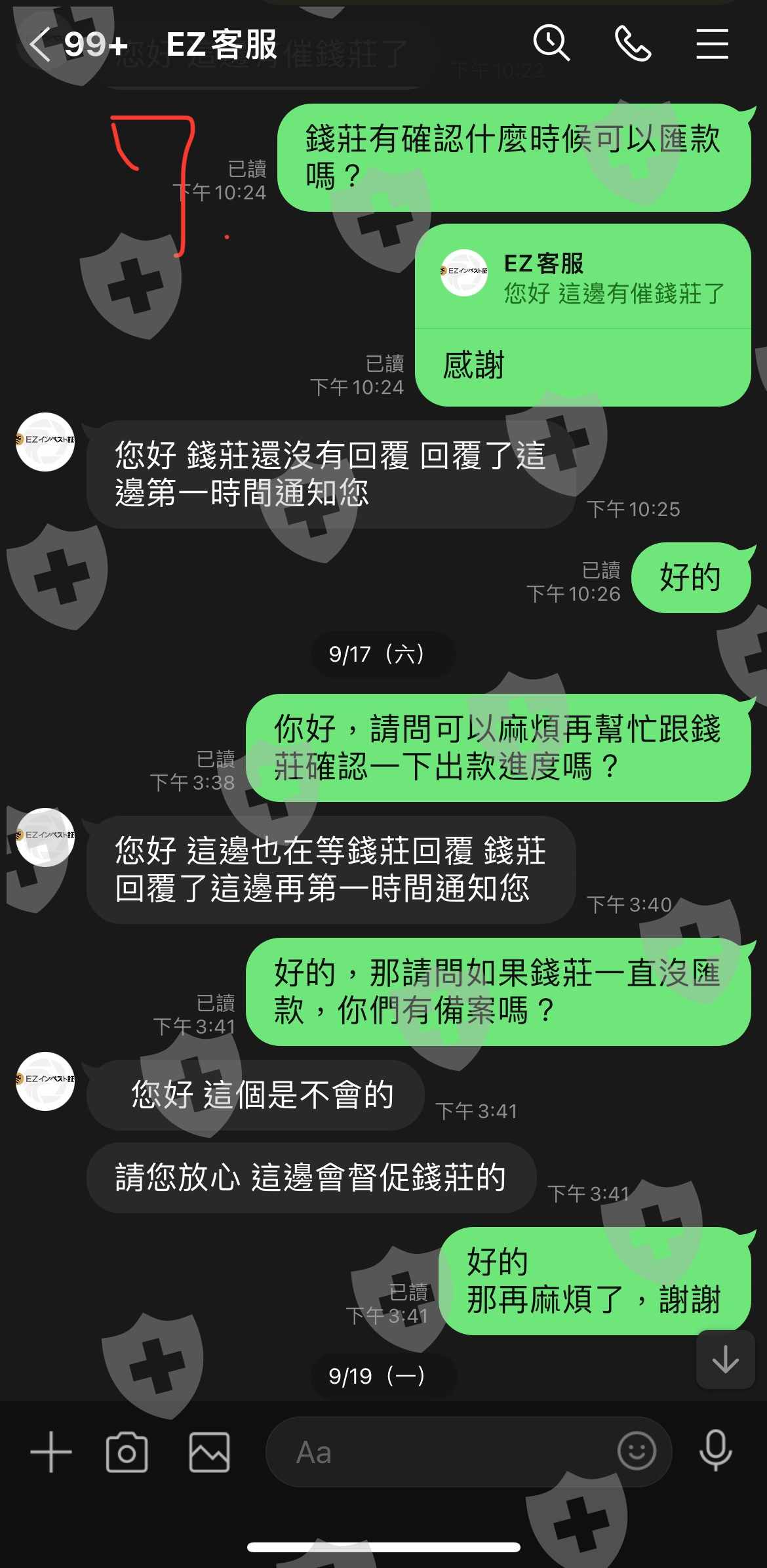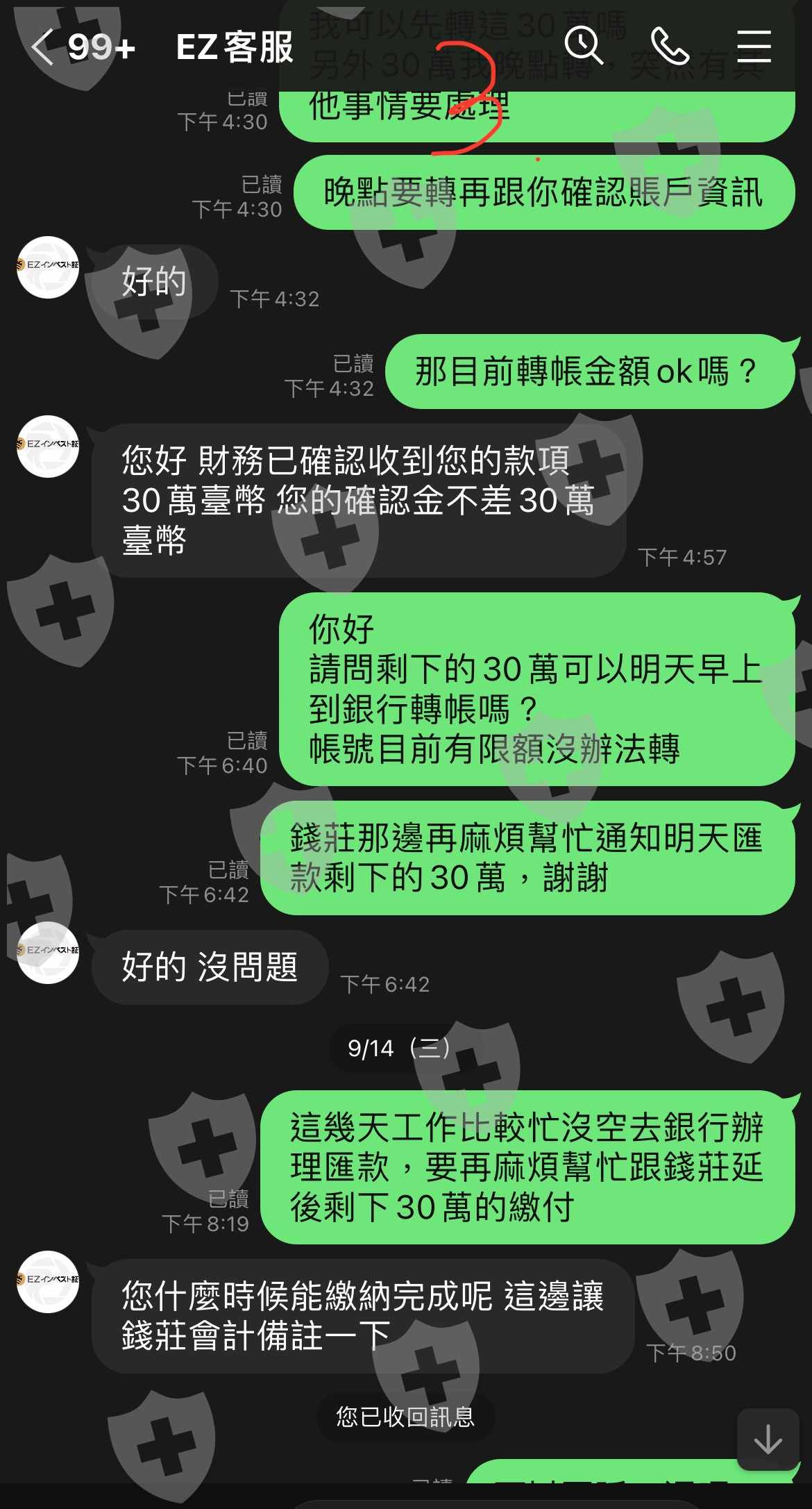 接續前一則擅自將出金交由錢莊匯款,後續持續要求繳交確認金,流程金...等各種名目的款項,並遲遲不匯款,也不履行保證函內所承諾的內容,最後說是稅務機關凍結了所有款項,卻還要求繳流程金才成完成匯款,總計90K USD, 連一塊都沒有退還
