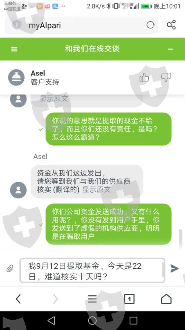 我在Alpari平台,注册交易并且获得了利润,当我提取资金时,多日未能到账,和客服联系时,他们总在拖延