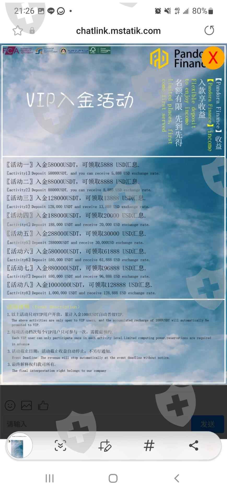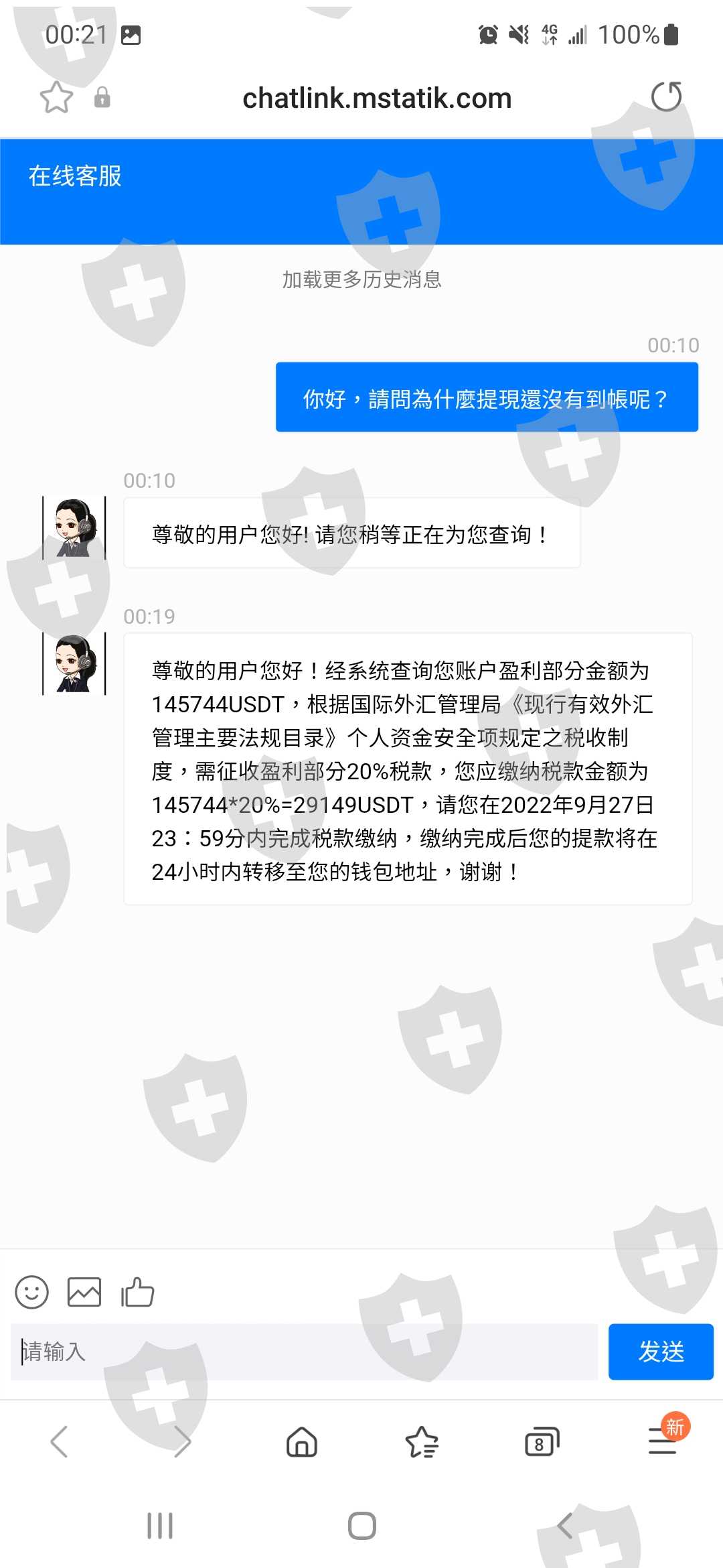 大約8月中旬在IG上認識一位,具有新加坡籍的台灣人,一開始只有閒話家常,後來他漸漸提及自己有投資國際黃金,並且願意教我一起投資,期間也開始對我展開追求,編織一起賺錢、一起為未來努力,打造更好生活的美夢,我們每天都在通電話,以降低我的戒心。後來他要我按照他的指示,下載幣安、MT5及Pandora Finance Co.,且一步步教學如何交易,帶我入金USDT,剛開始先入5萬臺幣等值的USDT,買黃金賺收益小賺,第二次叫我入金為了本金可以增加收益也會賺比較多,但是後來叫我參加的入金活動就很奇怪,直接叫我貸款,我貸到將近120萬臺幣,要入金128000USDT,就送13888USDT收益,我參加了真的有看到帳裡有13888的收益獎金,但原本是活動上沒說清楚,沒有說入金不到活動的金額會扣除每日余額5%,而且也不能取款。之後要準備提現了,現在客服又說要我再繳稅20%的盈利,我覺得為什麼不直接在我獲取的盈利上扣除,為什麼要我再去多繳這一筆稅金。