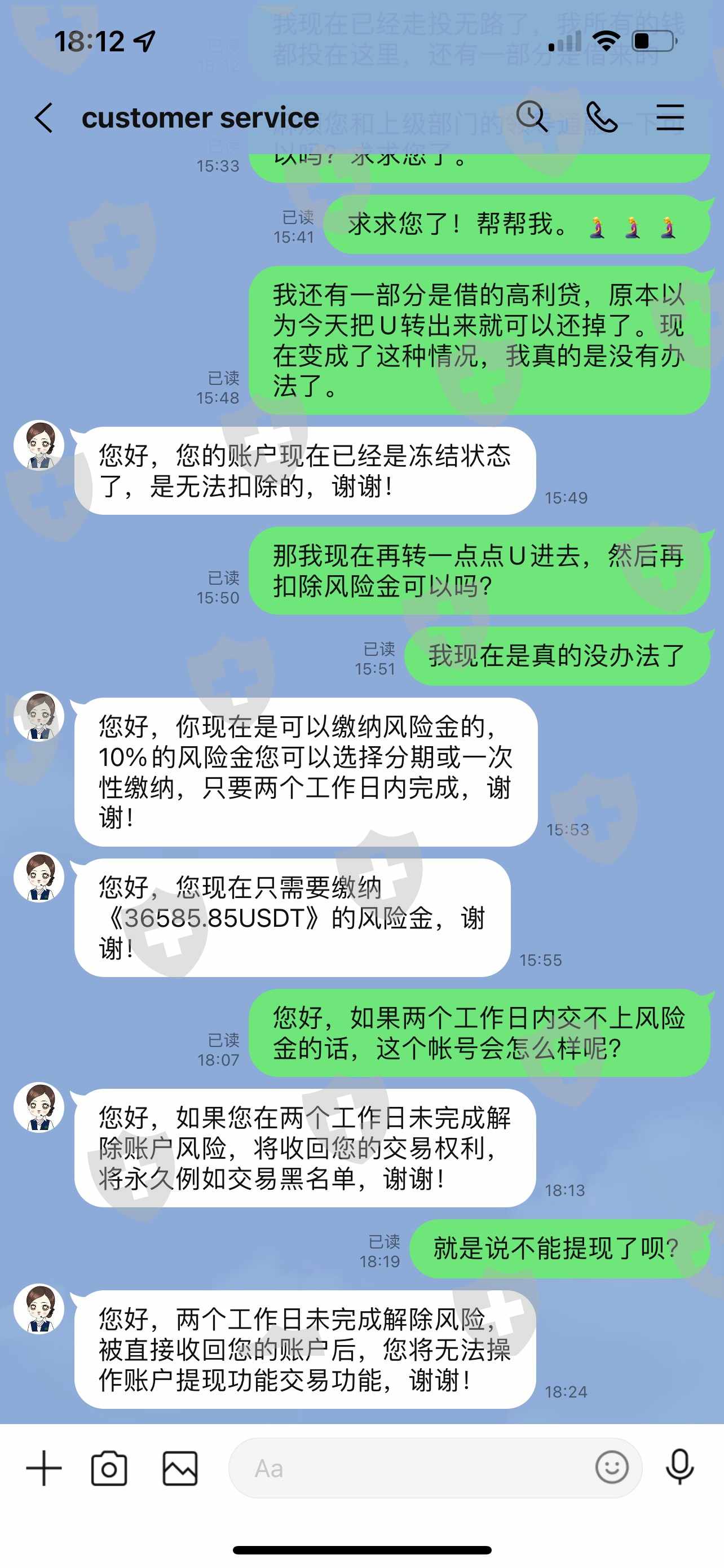 我是刚刚接触MT5的新手,有很多不懂的地方,前天晚上通过朋友的带领做了MT5的节点后和SOPHIE CAPITAL FINANCIAL TRADING PTY LTD平台的客服联系出金365858USDT,我把我的冷钱包地址发给了客服,我的冷钱包是新下载的,我不知道需要激活,第二天上午我联系客服,客服的回复是因为我的钱包未激活所以就不能讲USDT转入,最后我的帐号被冻结,现在需要我在两个工作日内用帐号10%的风险金来解冻帐号,如果两个工作日内不缴纳10%的风险金,我的帐号就被列入黑名单,永久不能进行提现和交易。