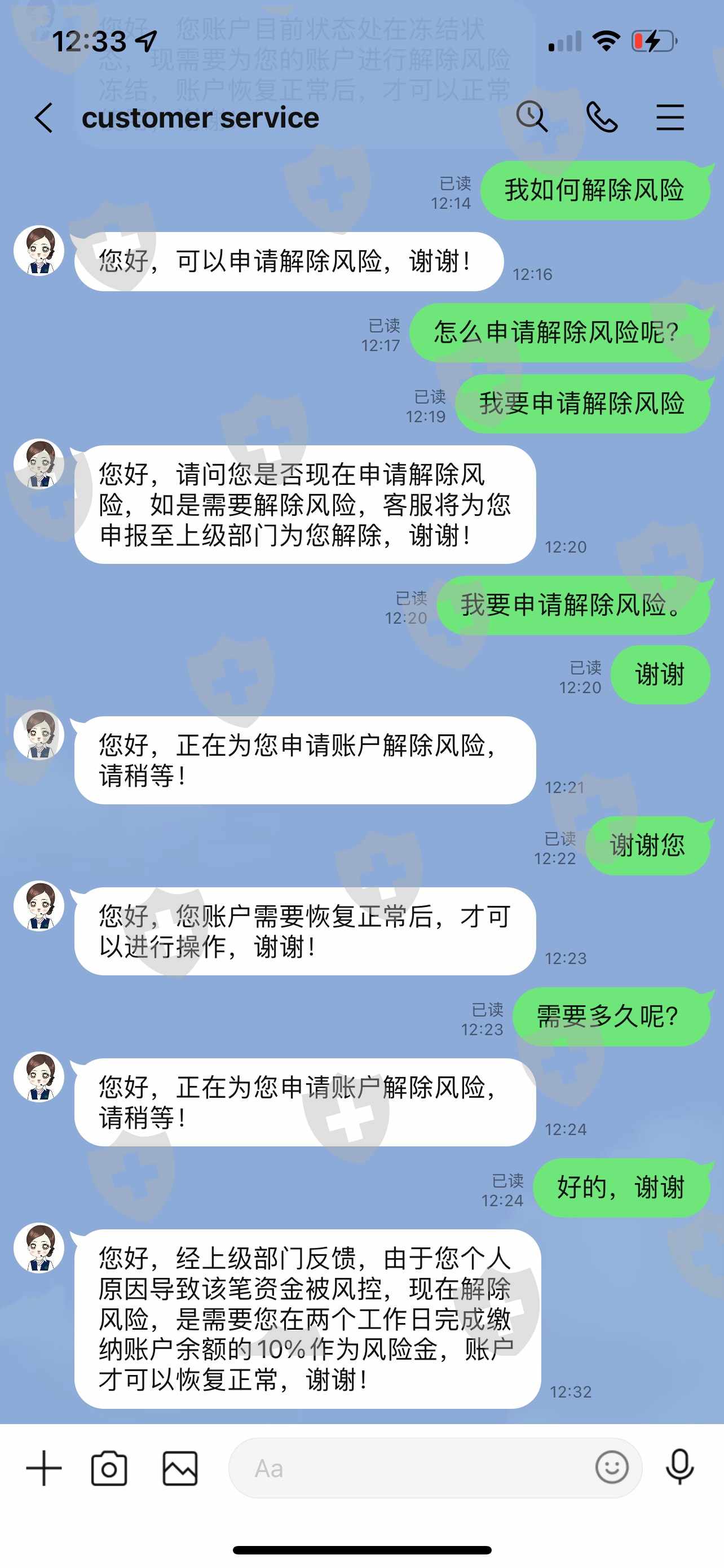 帐号被冻结需要缴纳帐号余额10%风险金解冻