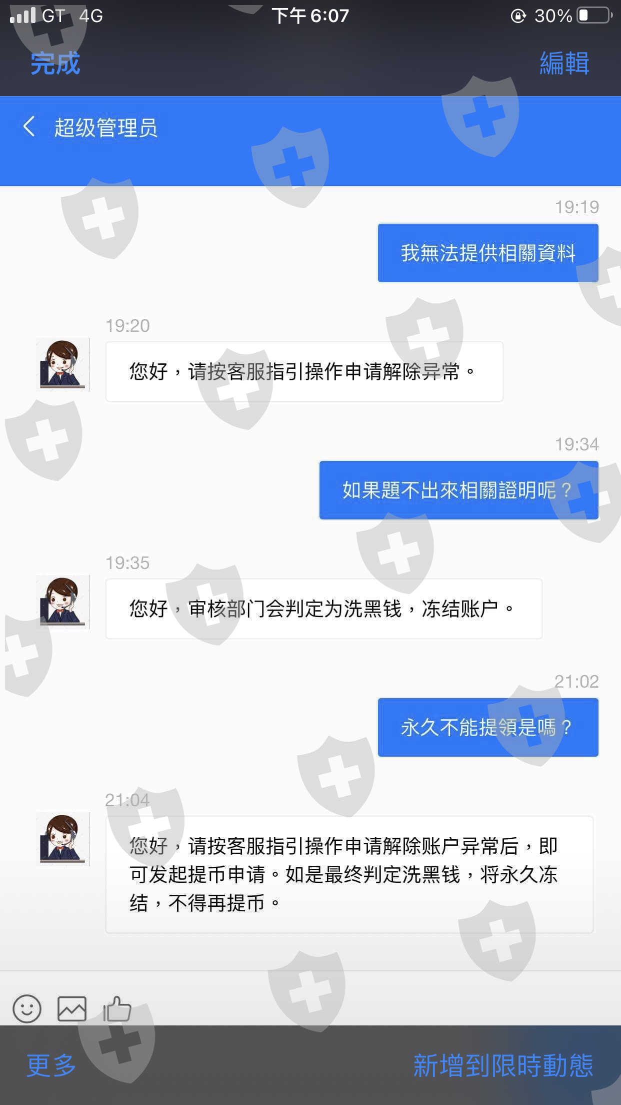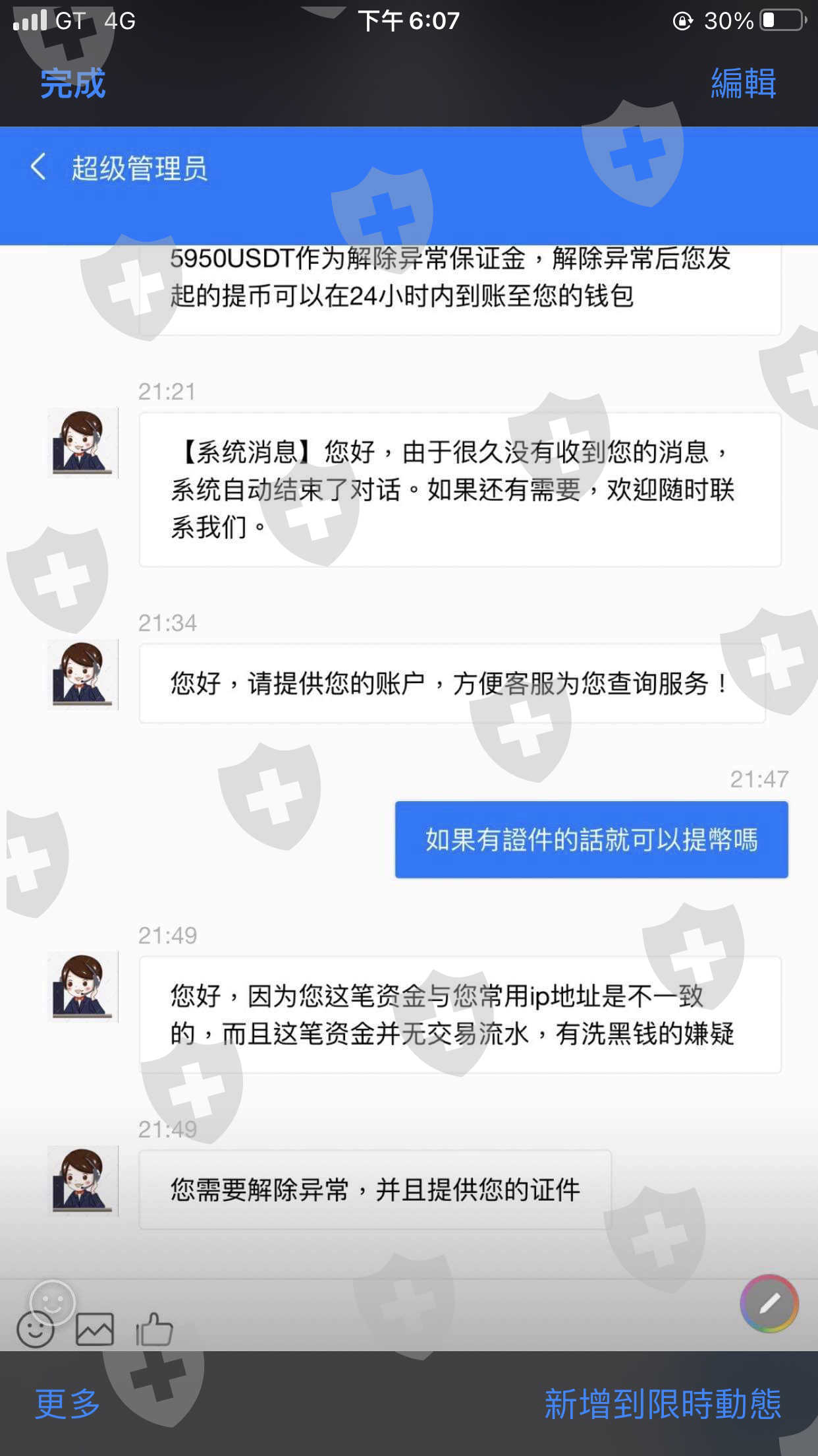 我在ig上認識一個香港男子後來聊聊就加了Line.後來關心每天慰問我過的好嗎?後來他就說他有接觸加密貨幣.把之前玩股票虧損都都賺回來.就慫恿我也一起投入加密貨幣.起初投入1萬多賺一點.後來在大額投入金額.想說放在裡面滾利.直到最近想要提幣客服說我交易異常不能夠提幣.我才曉得那是假的交易所.還要我匯入保證金等等。