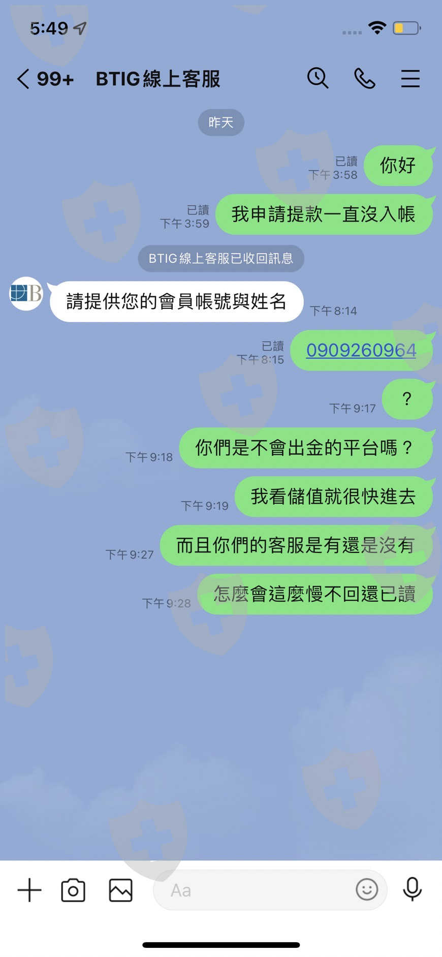 詢問客服不回應,無法出金提領了6天了,也沒有回應,問客服有跟沒有都一樣