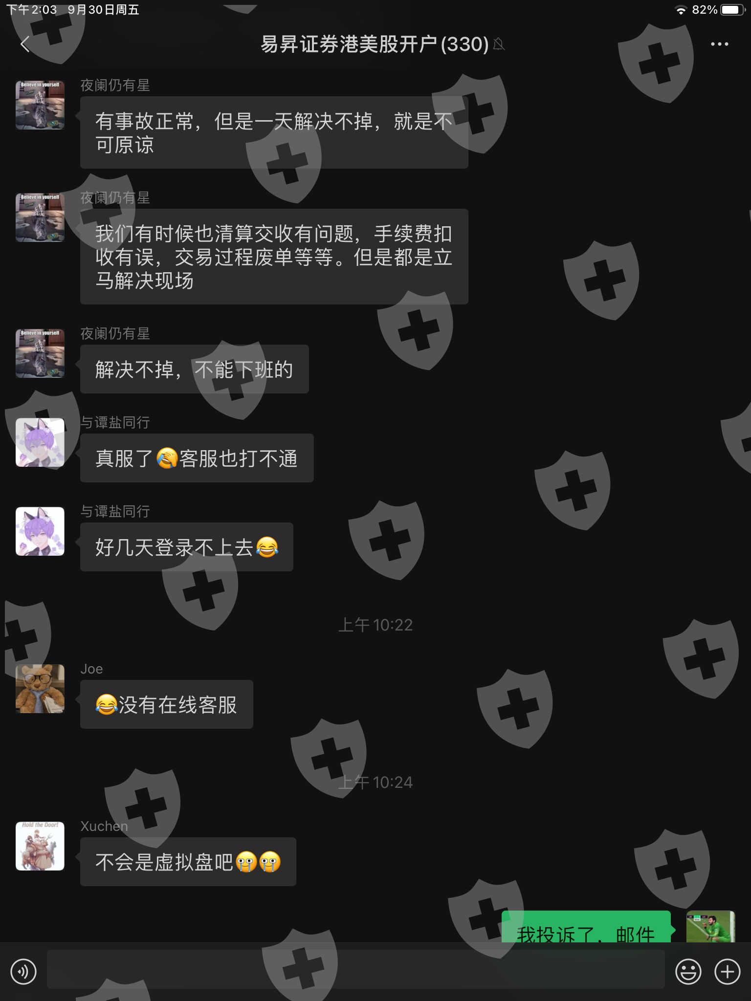 9月28凌晨完成交易,28号晚上美股开盘易昇服务器已无法连接操作,致使无法卖出操作造成亏损