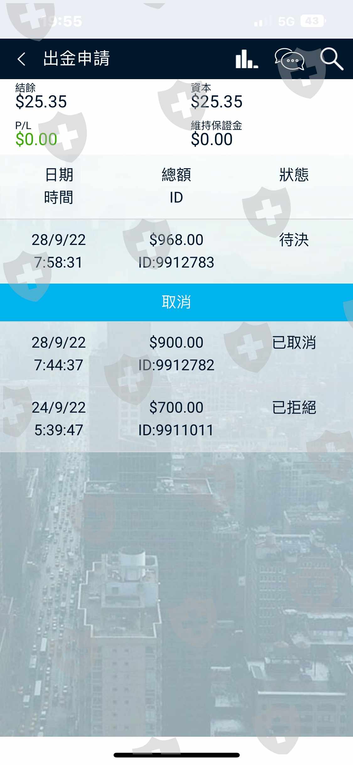 我要出金968美金一個禮拜,都沒辦法出金!之後待出金968美金,在提款項目裡面不見了!客服也沒回應,專員的LINE也不讀,我該找誰處理?