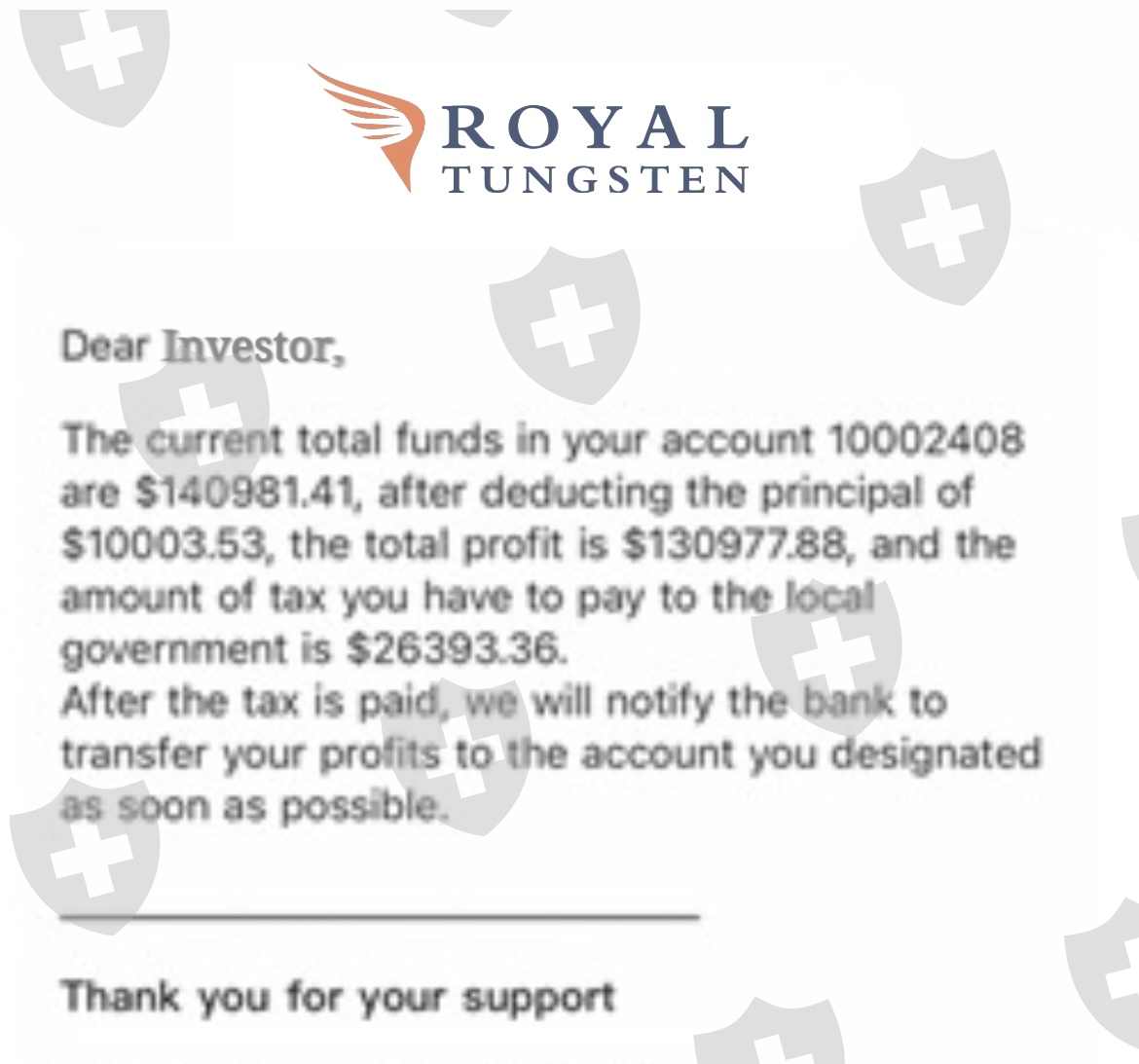 The Royal Tungsten withdrawal difficulties prior to finrecoup has made it that i completely doubted the concept behind investing online and the withdrawal procedure as i was on the verge eof losing $10,000 in deposit and over $120,000 n profits