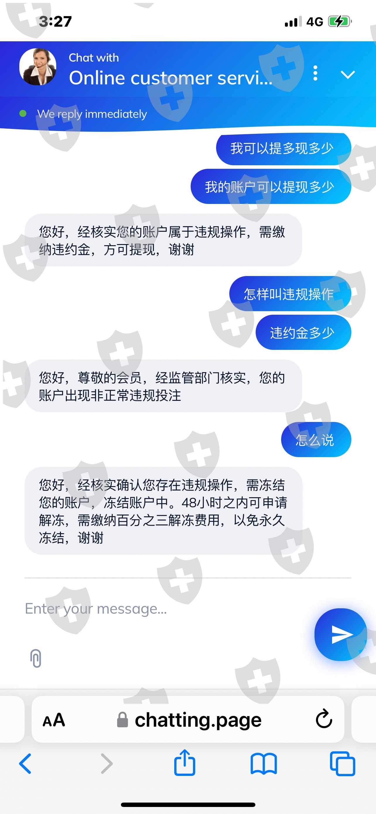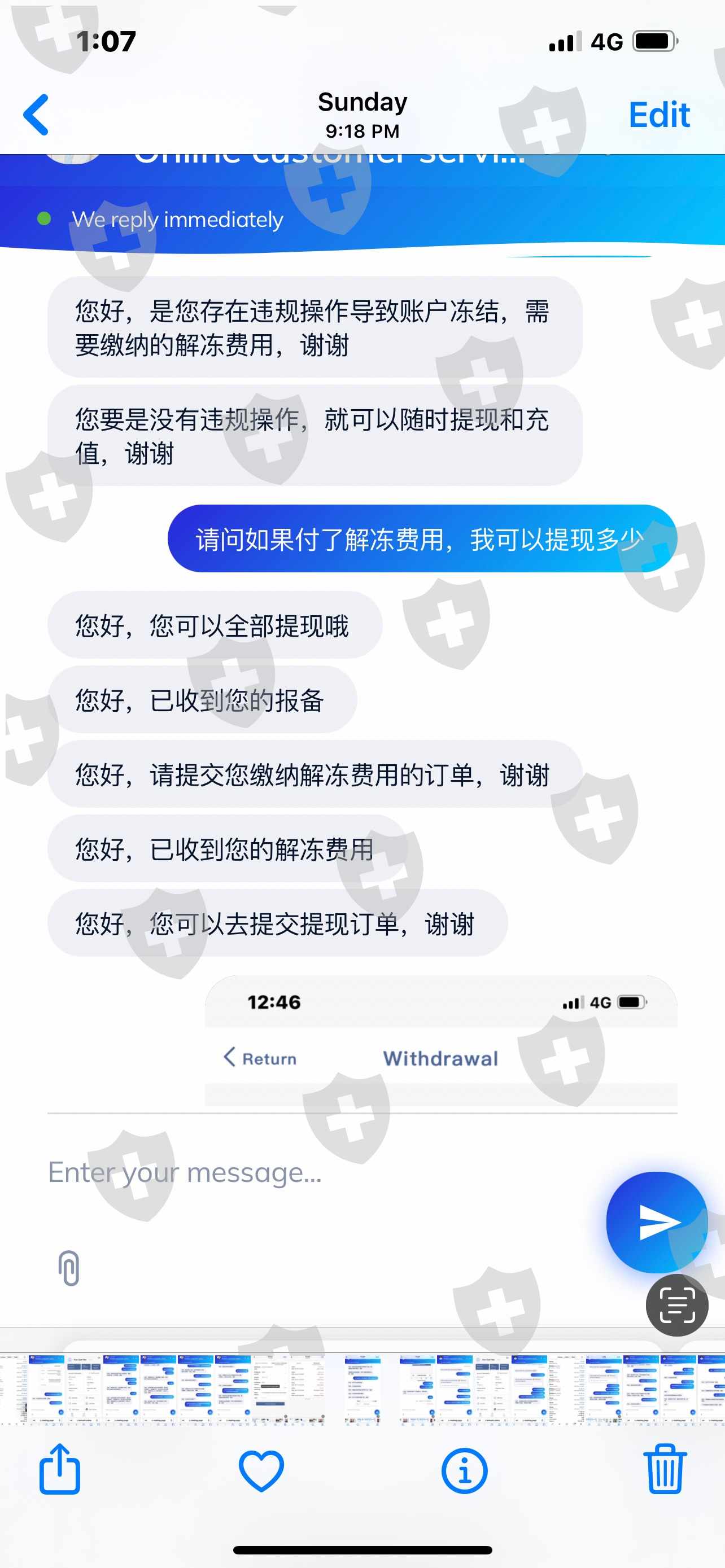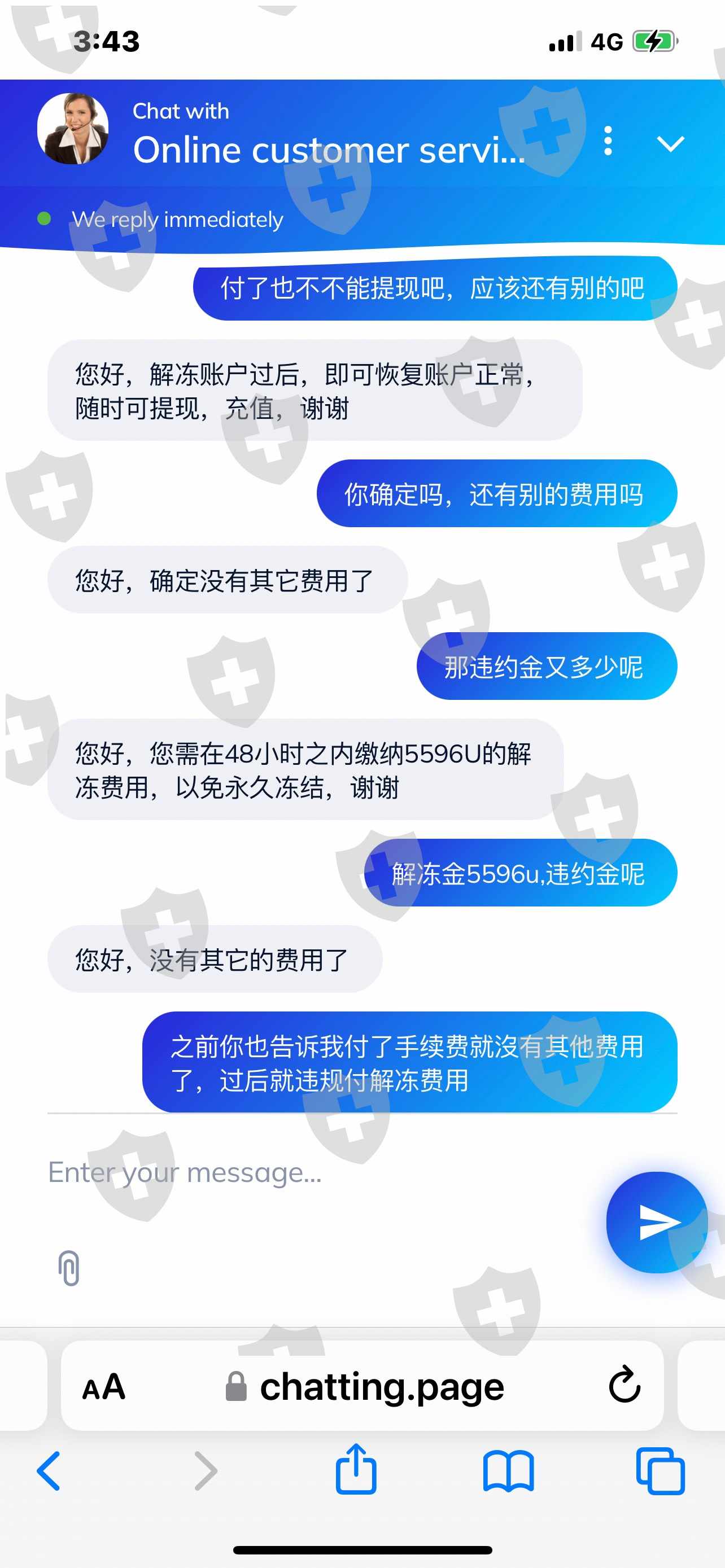 要出金时,要求付8883u手续费,付了手续费又讲非法违规操作,账户冷结需要付解冻金5596u,付了解冻金就说账户属于非法违规操作公司将要对我采取法律措,寻求帮助