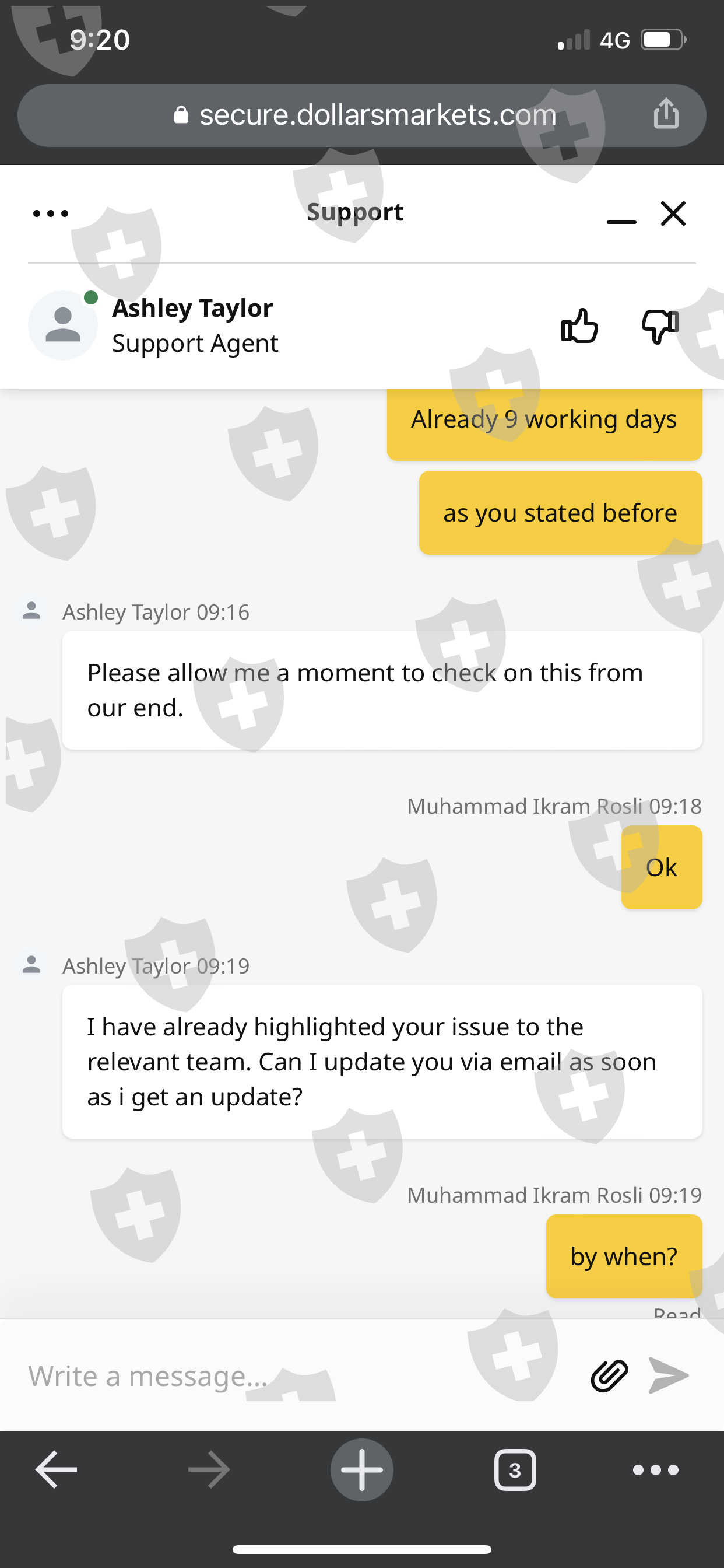 我于2022年9月29日存款。截至今天,我的账户已从500美元增长了300%至2000美元。并于2022年10月4日提出提款请求。但是交易商拒绝了我的提款请求。他们说他们要调查我的帐户。什么垃圾交易商。我知道这个黑交易商会吓到大量获利的交易者。