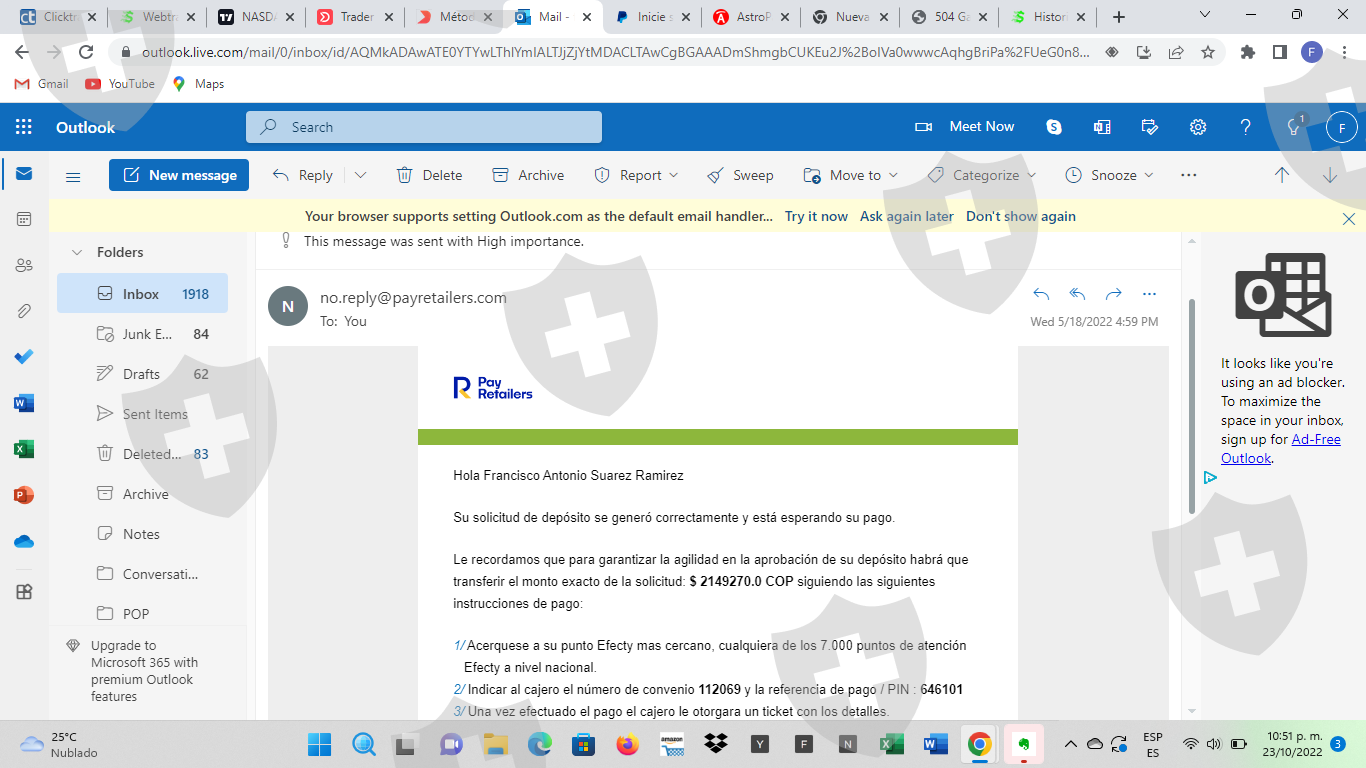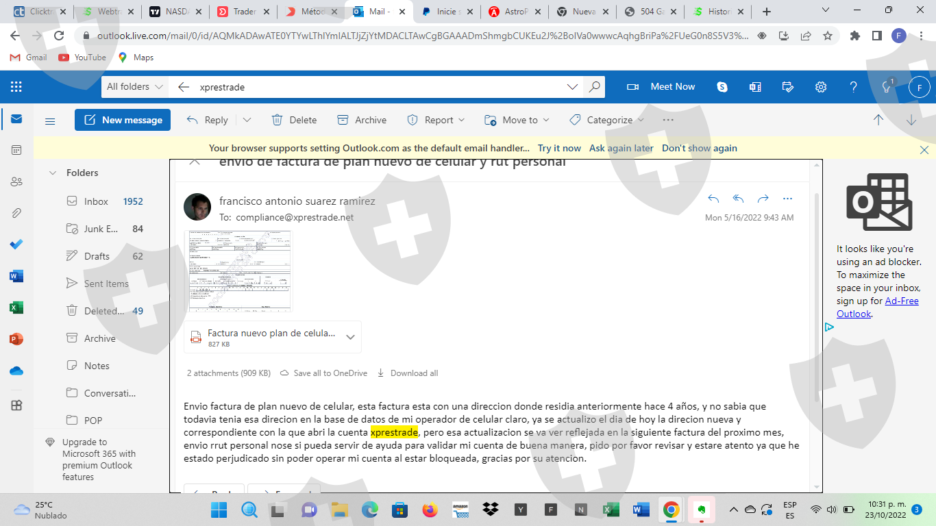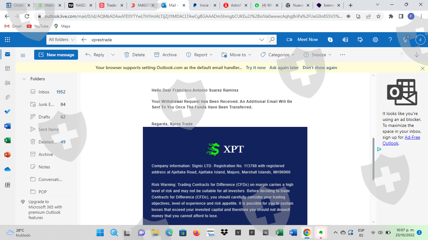 我公开这个公开投诉是为了警告其他人同样的事情也可能发生在他们身上,这个所谓的经纪人拥有普通经纪人的所有设置,咨询电话,一切正常。当时我对这个主题不太了解,我犯了没有好好调查的错误,一开始玛丽亚·马丁内斯夫人建议我几个月,我通过 WhatsApp 离开了对话测试,当我已经有了一些想法,他们给我指派了另一位名叫 esteban cardona 的经理,他教了我更多知识,并为我配置了非常高效的内部靴子,除了我输入的订单外,我还对其进行监督,在 4 个月内一点一点地上传我的账户我从 250 美元的存款开始,然后我输入了 500 美元,玛丽亚建议我能够在我的挂单中冒更多的风险,在靴子的帮助下得出了一些非常好的订单 7,400 黄金,3,000和4,000的石油,帐户在上个月提高到19,000美元,我已经要求提款,因为当我开始提出问题时,由于缺乏经验,他们让我等待更长的时间来管理提款,这并不异常,我永远无法取款,他们总是告诉我我必须支付一些佣金才能下载部分付款的东西,他们为我分配了最后一位名叫 ricardo 的经理,通过多次电话和解释,要求至少存入 250 美元以提取 5000 美元,但从未发生过,小心这个骗局经纪人不要一直作弊。