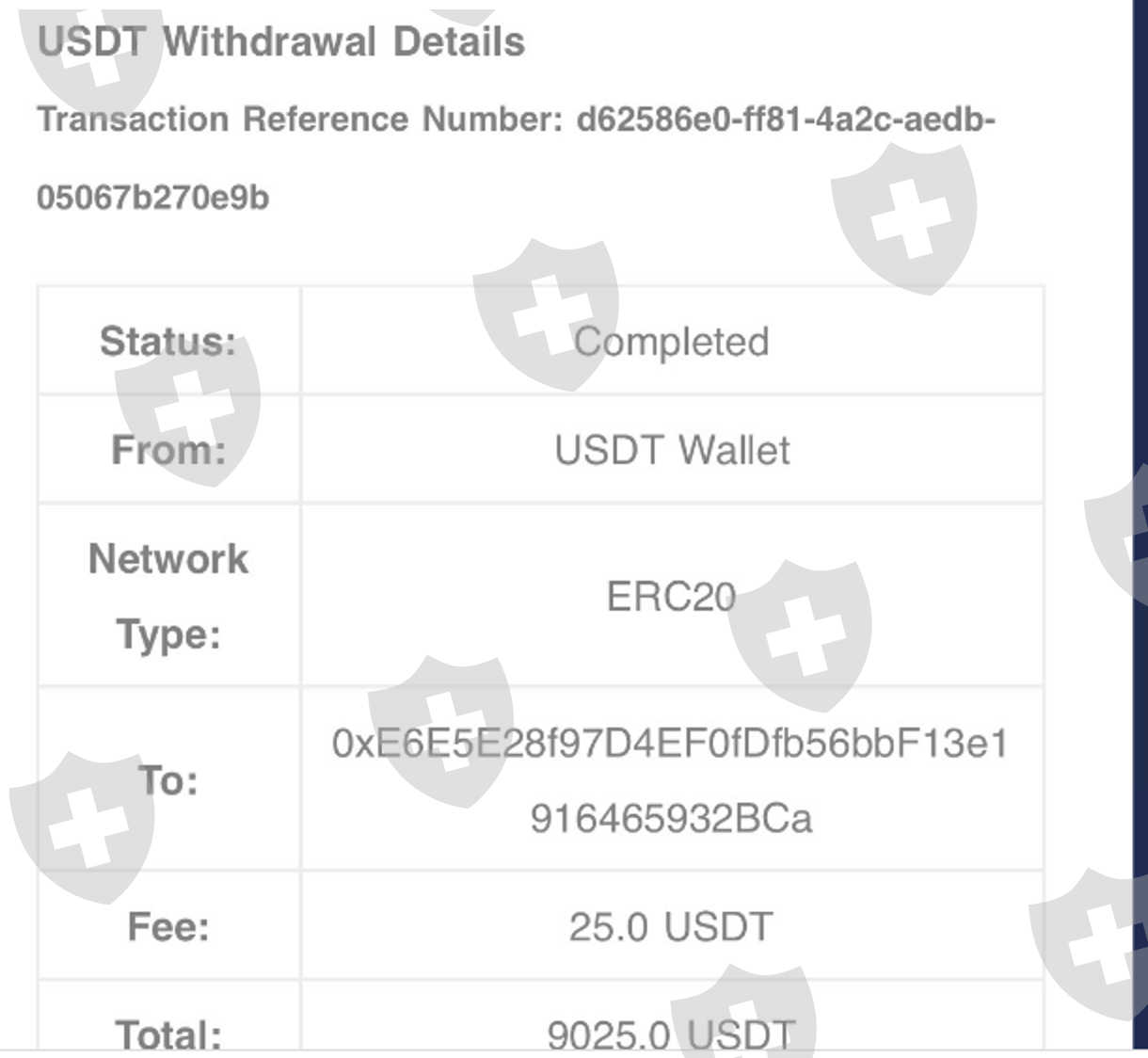 要远离SHANGQUAN,因为他们的运作方式。他们从不允许提款。我的交易账户资金来自我的加密货币交易所,在收到我的 mt5 存款通知后,我开始交易并将我的投资组合增加到我满意的退出阶段。非常奇怪的部分发生在我要求提款时,我被告知我必须达到一定的交易余额才能提款。这引发了第一个危险信号,我给他们发了电子邮件为什么?他们回答说这是平常的,但我的直觉告诉我不是这样,这就是我研究的原因 SHANGQUAN作为经纪人的存在,我发现他们骗了很多人。作为受害者我感觉很糟糕,但我很高兴曝光他们。我已经在下面的图片中向他们的钱包地址展示了我的存款,并从相关当局确认他们正在运行一个诈骗计划,这将是有帮助的。