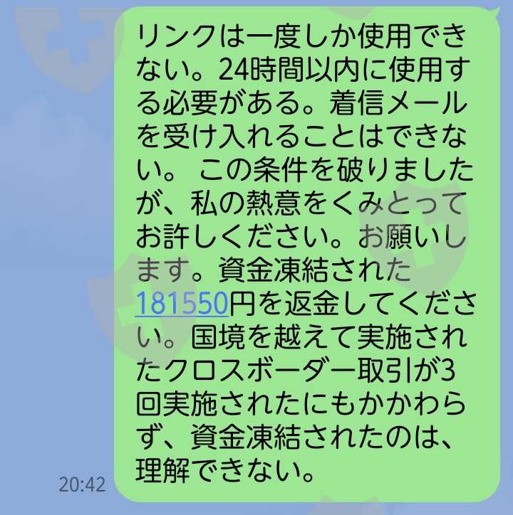 kaiher global Ltd在网站上注册 kaiher,27号收到邮件,但没注意,昨天29号发了回复邮件,要求退还冻结资金181,550日元。