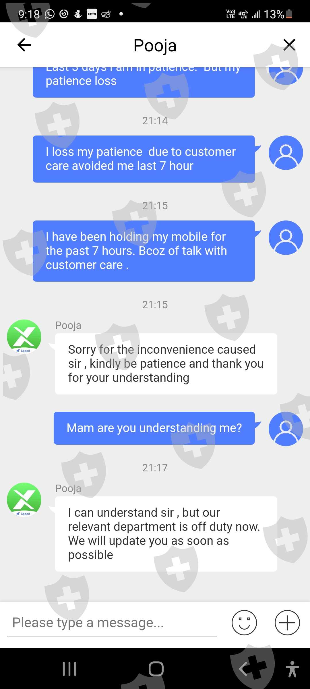 Your relevant department working on my complaint or not ?