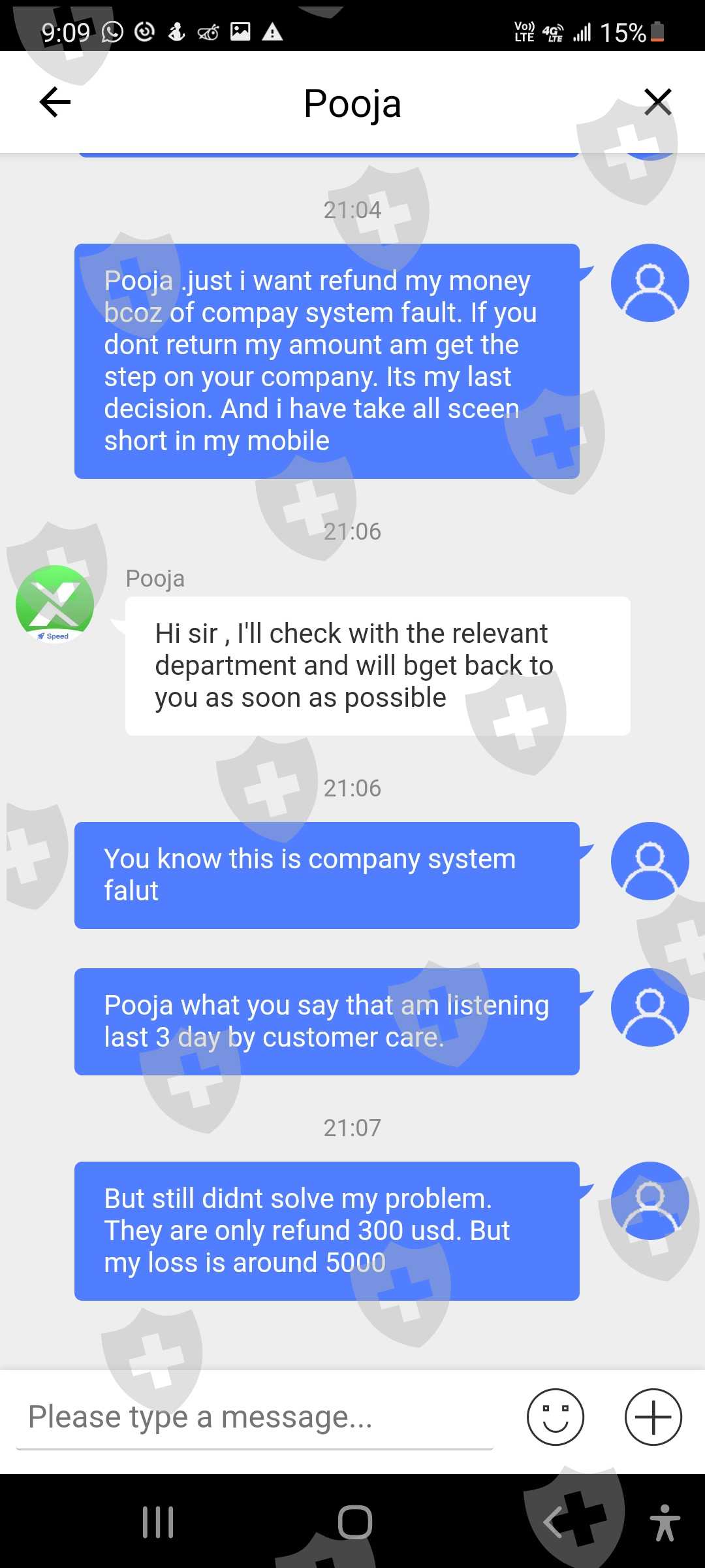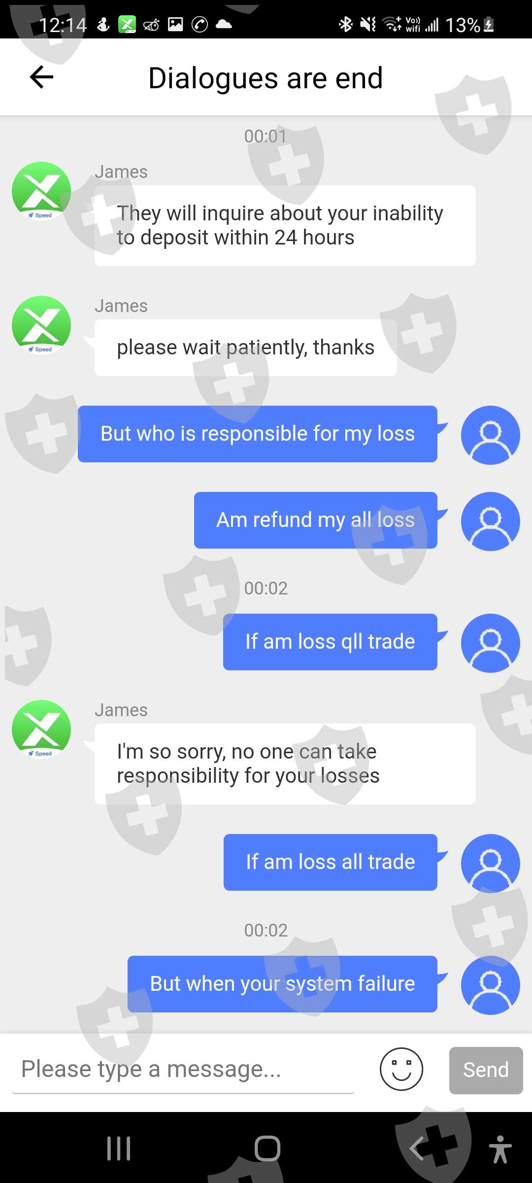 Even today I saw a loss of 1471 usd due to your system failure.