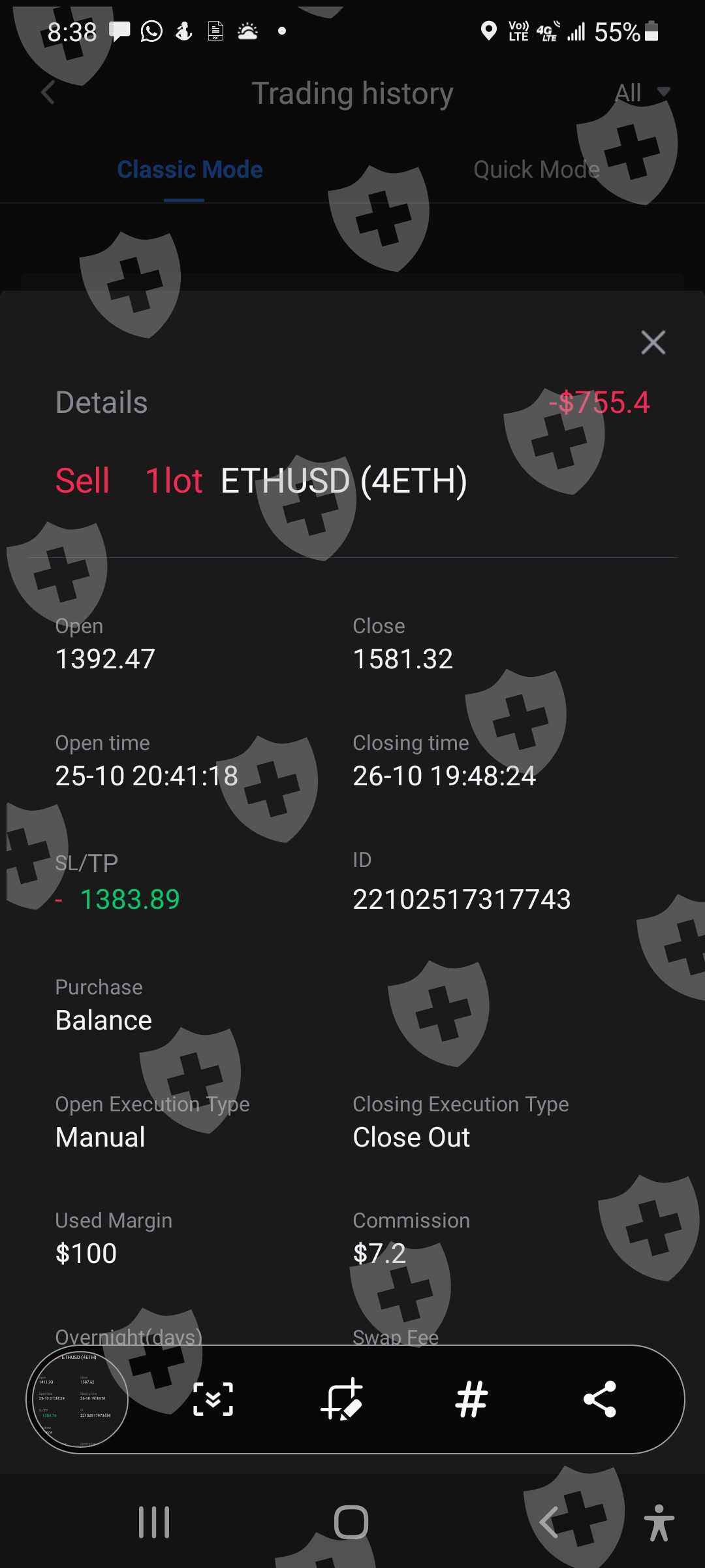 And saw a loss of 1471 usd today on 26 Oct