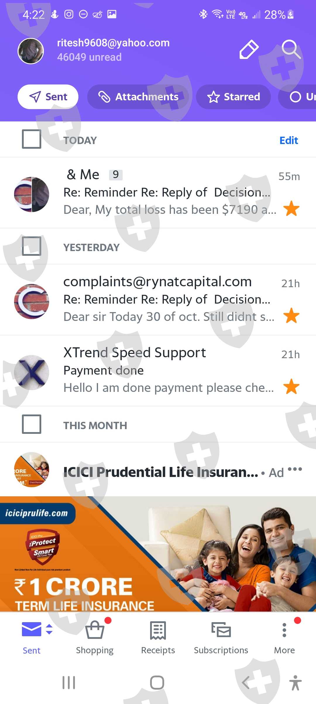 Am attaching today sceen short.