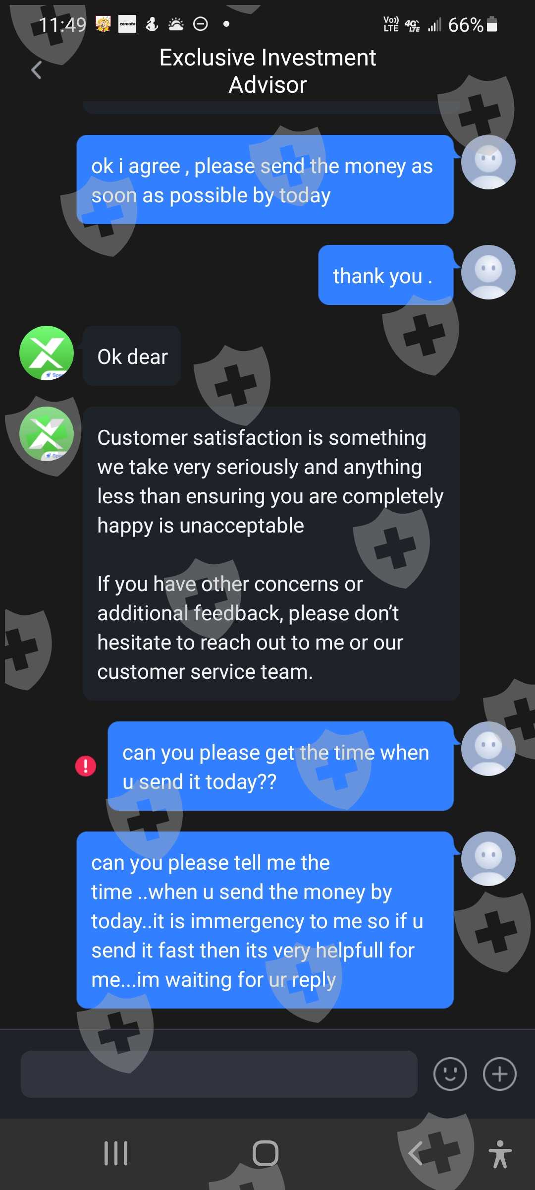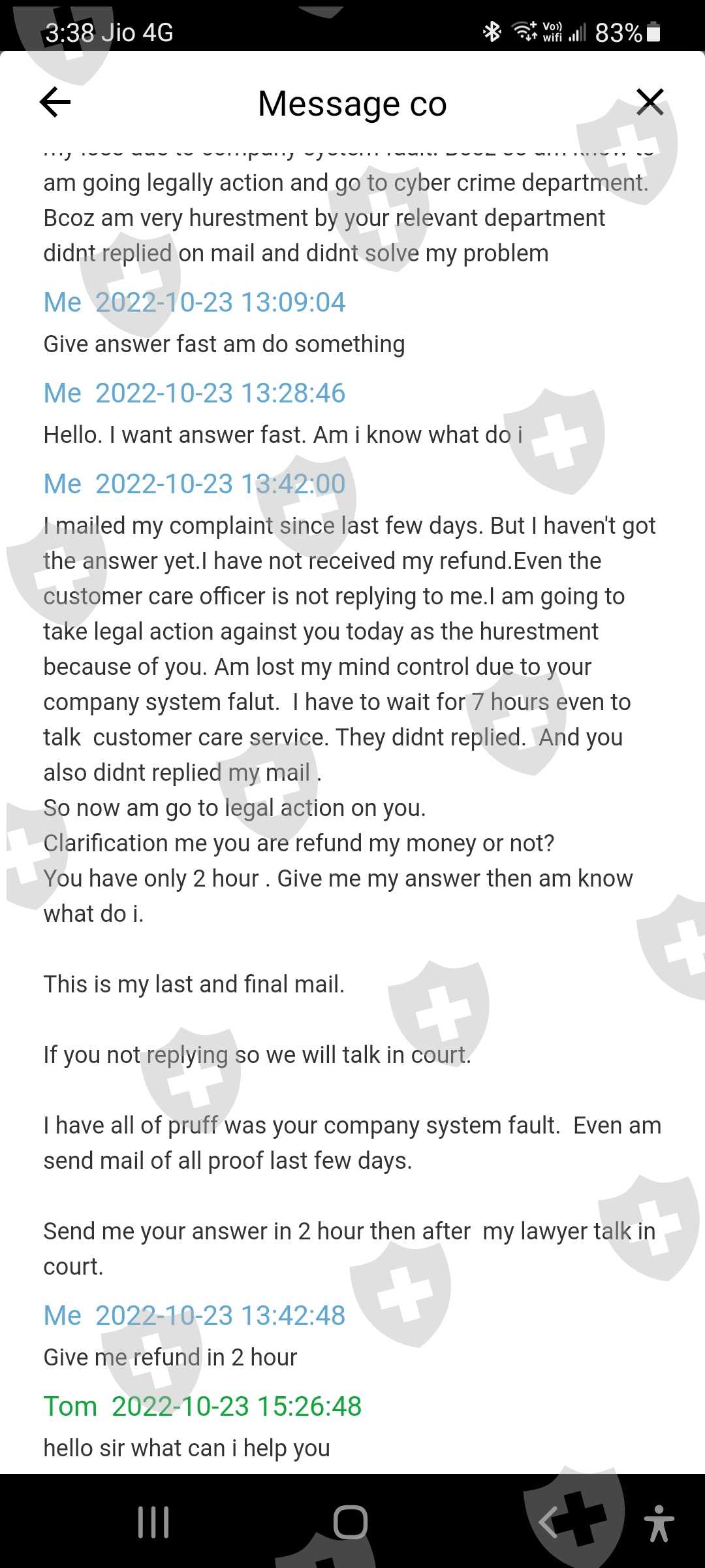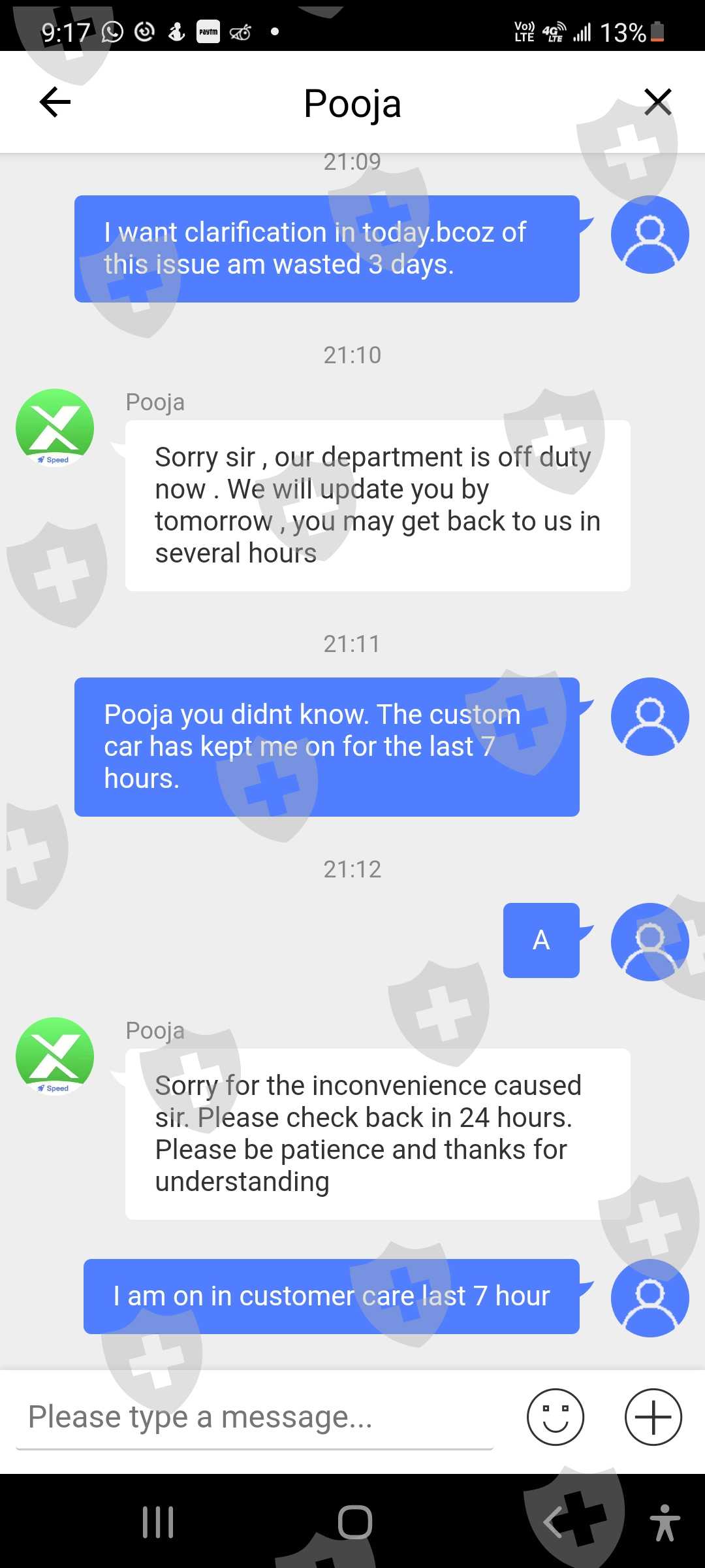 They dont have time replied to customer