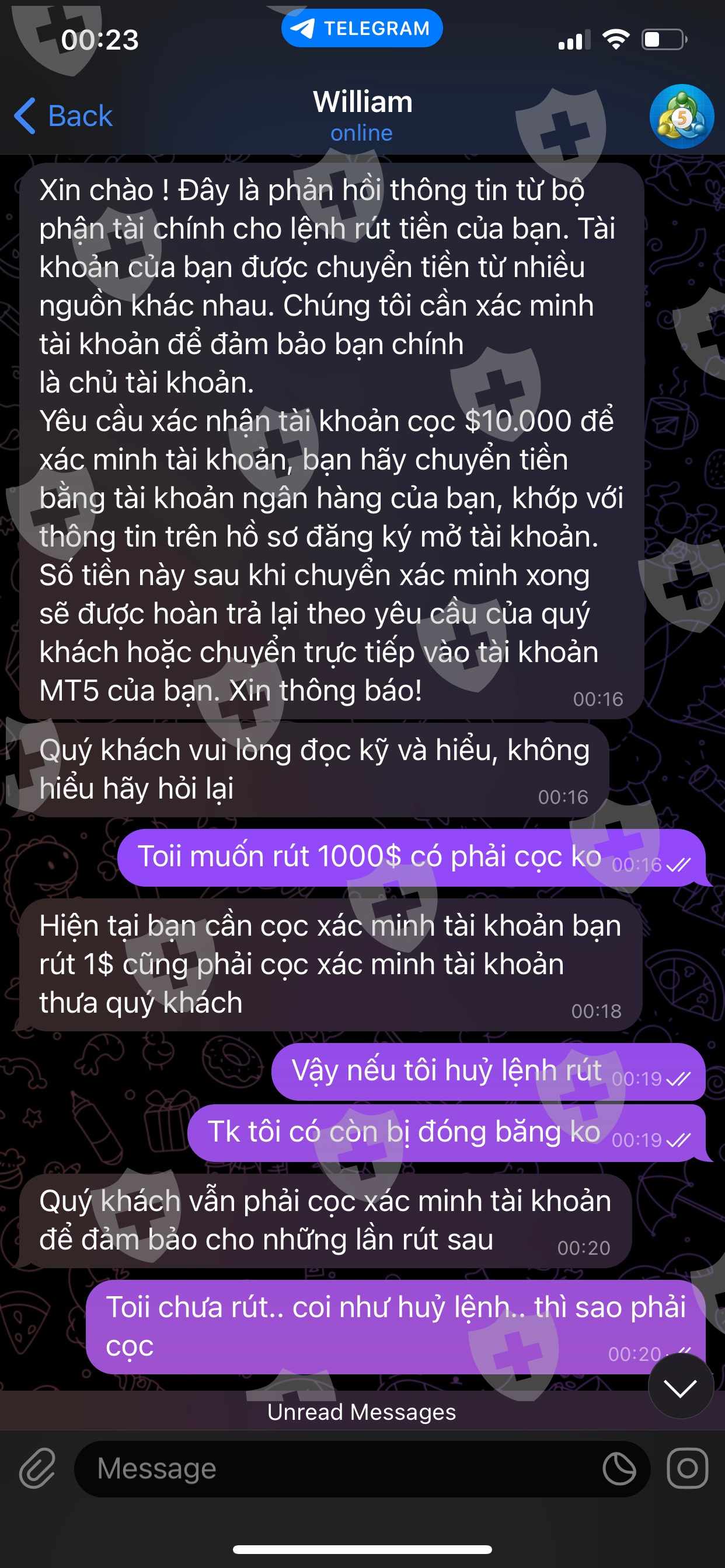 Khi tôi làm lệnh rút tiền thì sàn bắt nộp 10.000$ để xác minh số tài khoản..