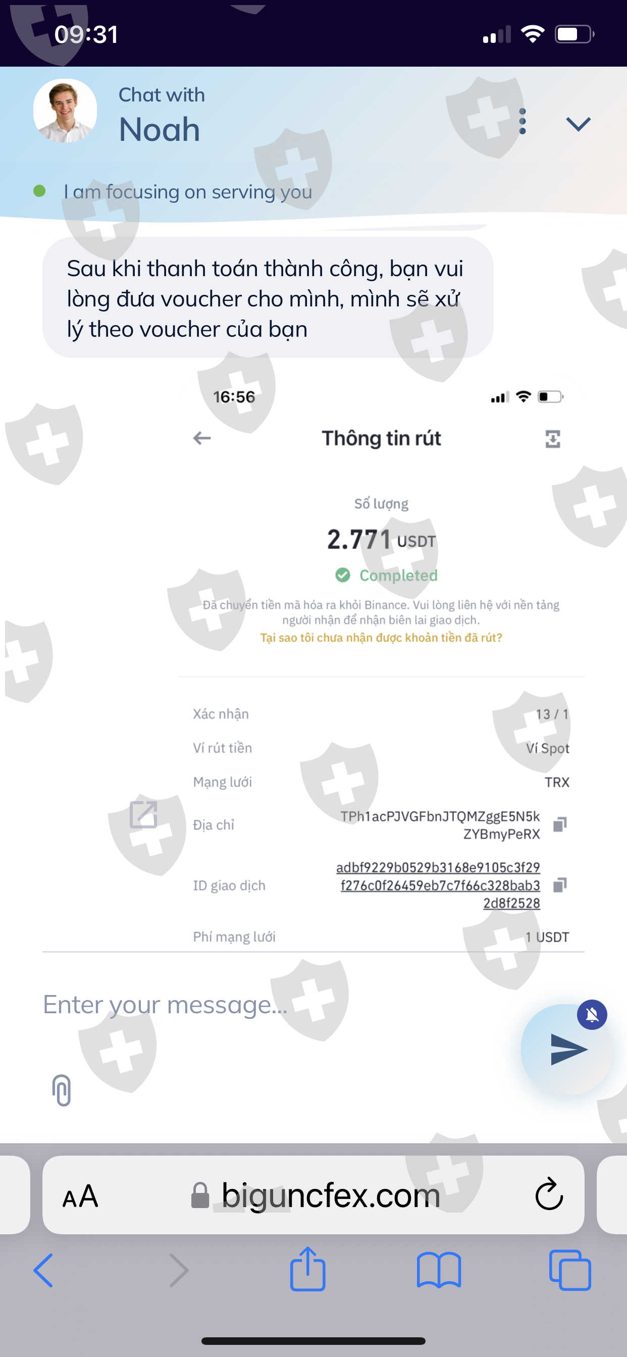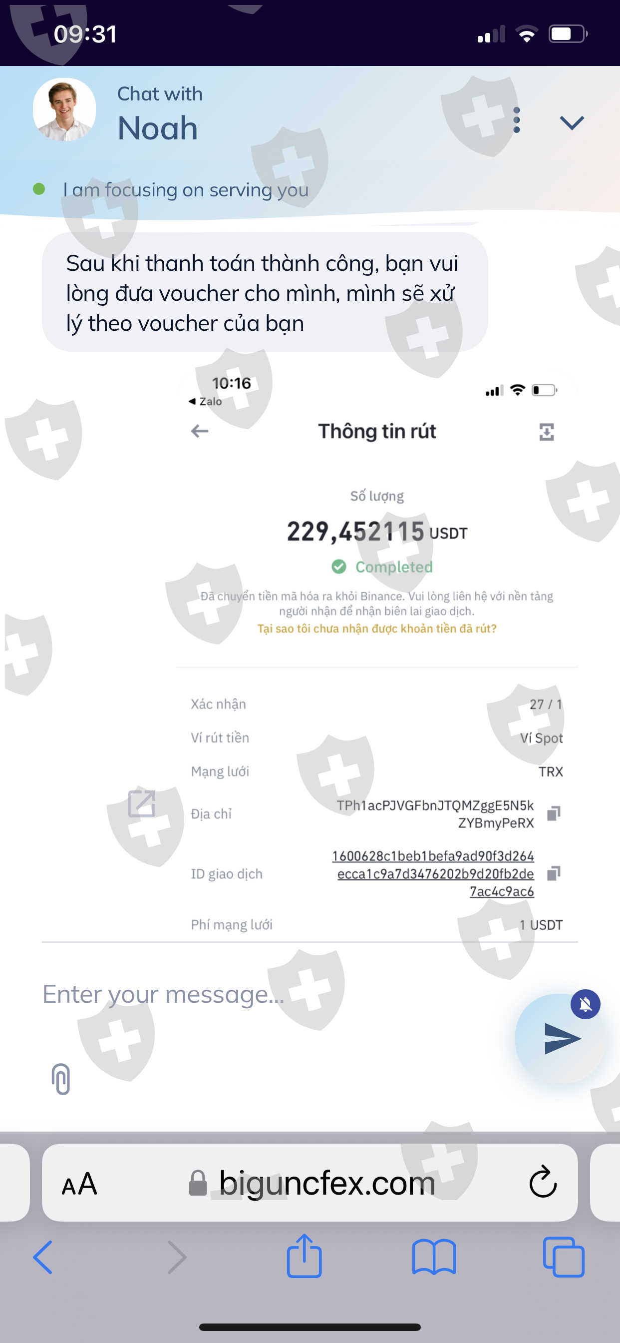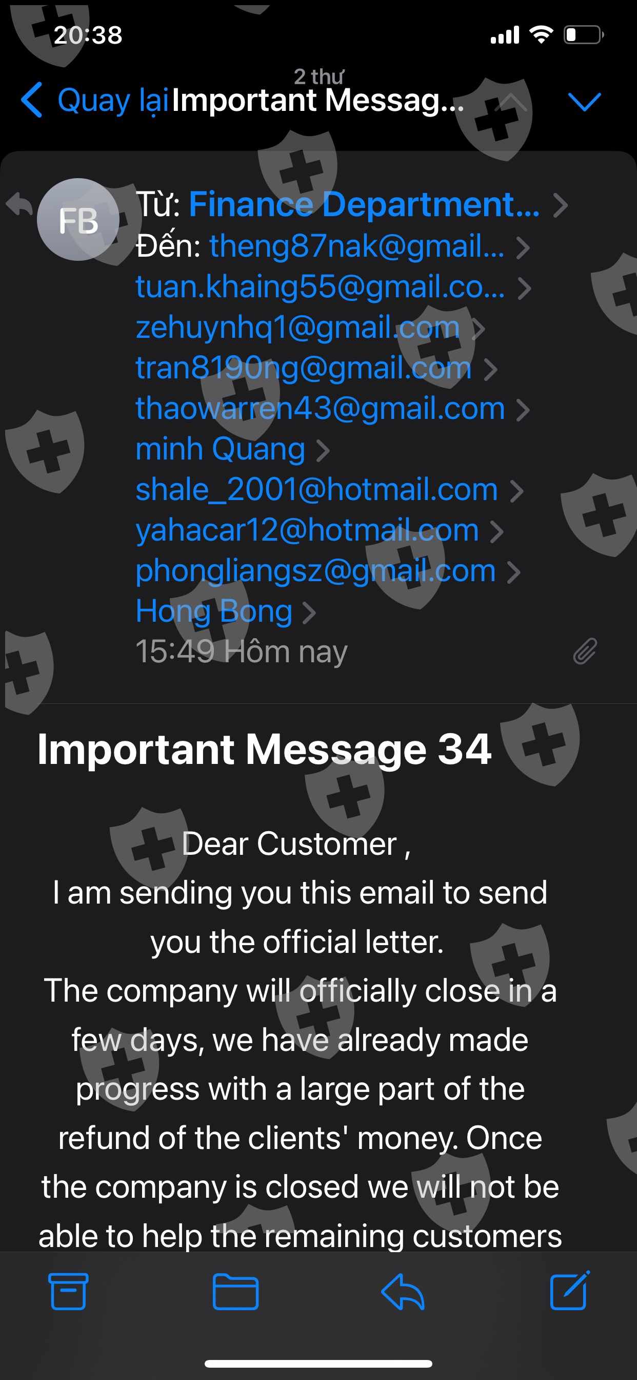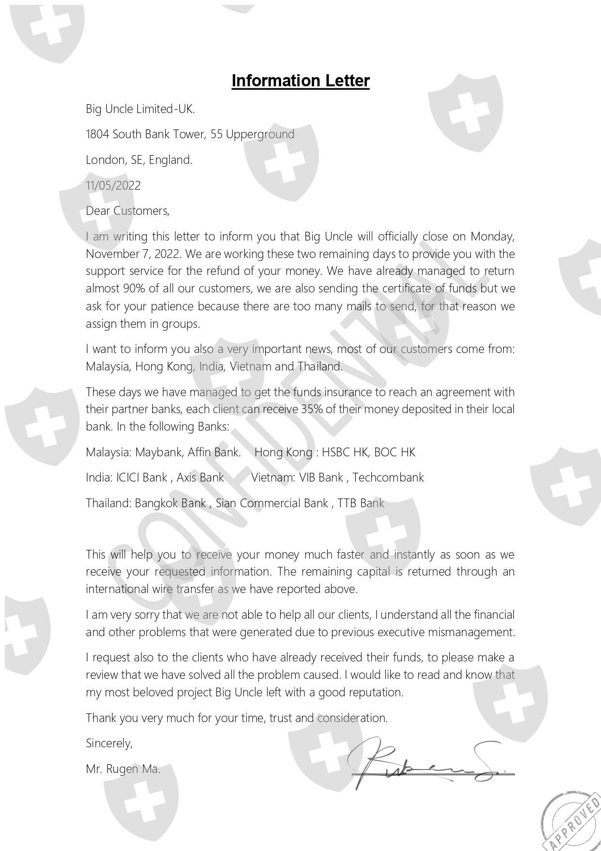 Biguncle交易所一直保留着这笔钱,需要交税。现在他们通过电子邮件发送破产邮件,要求退款。帮我