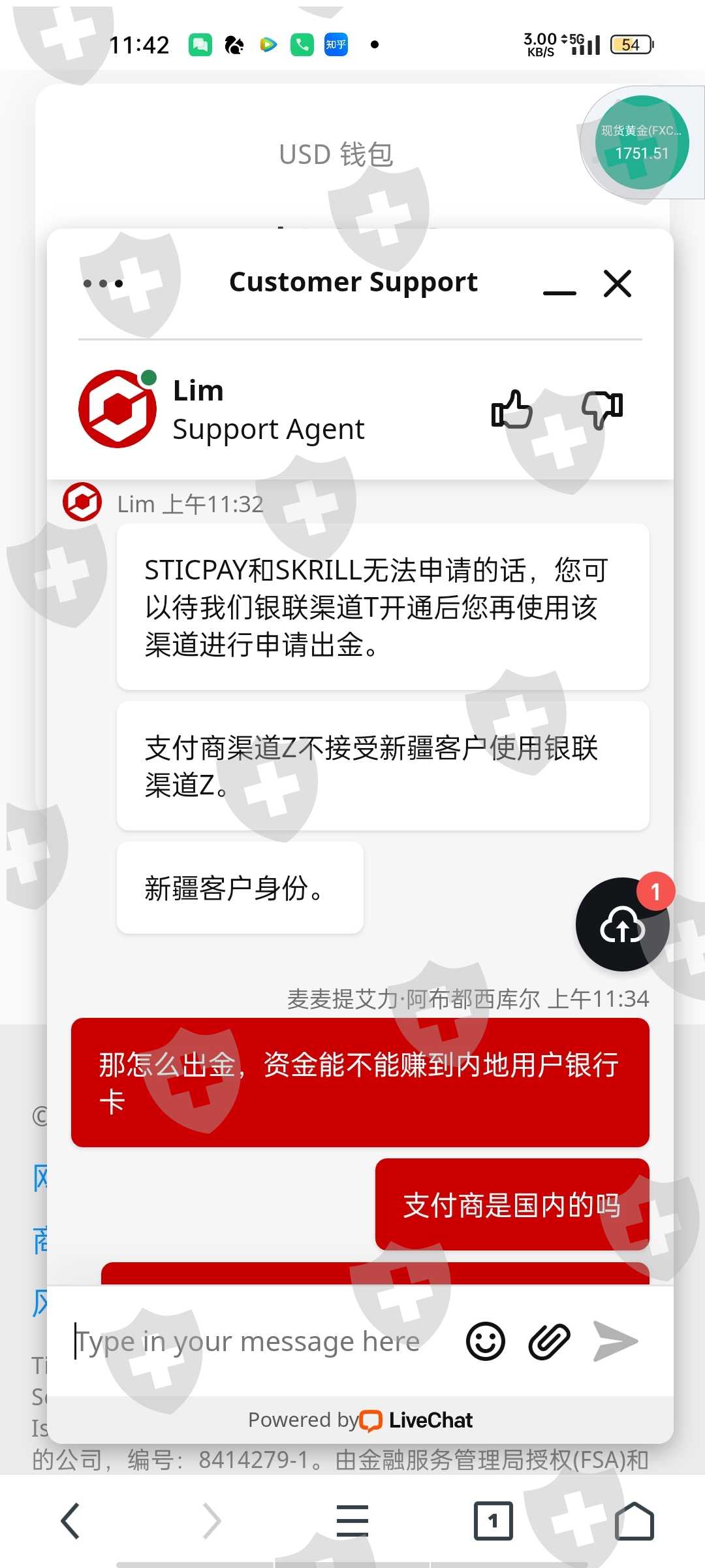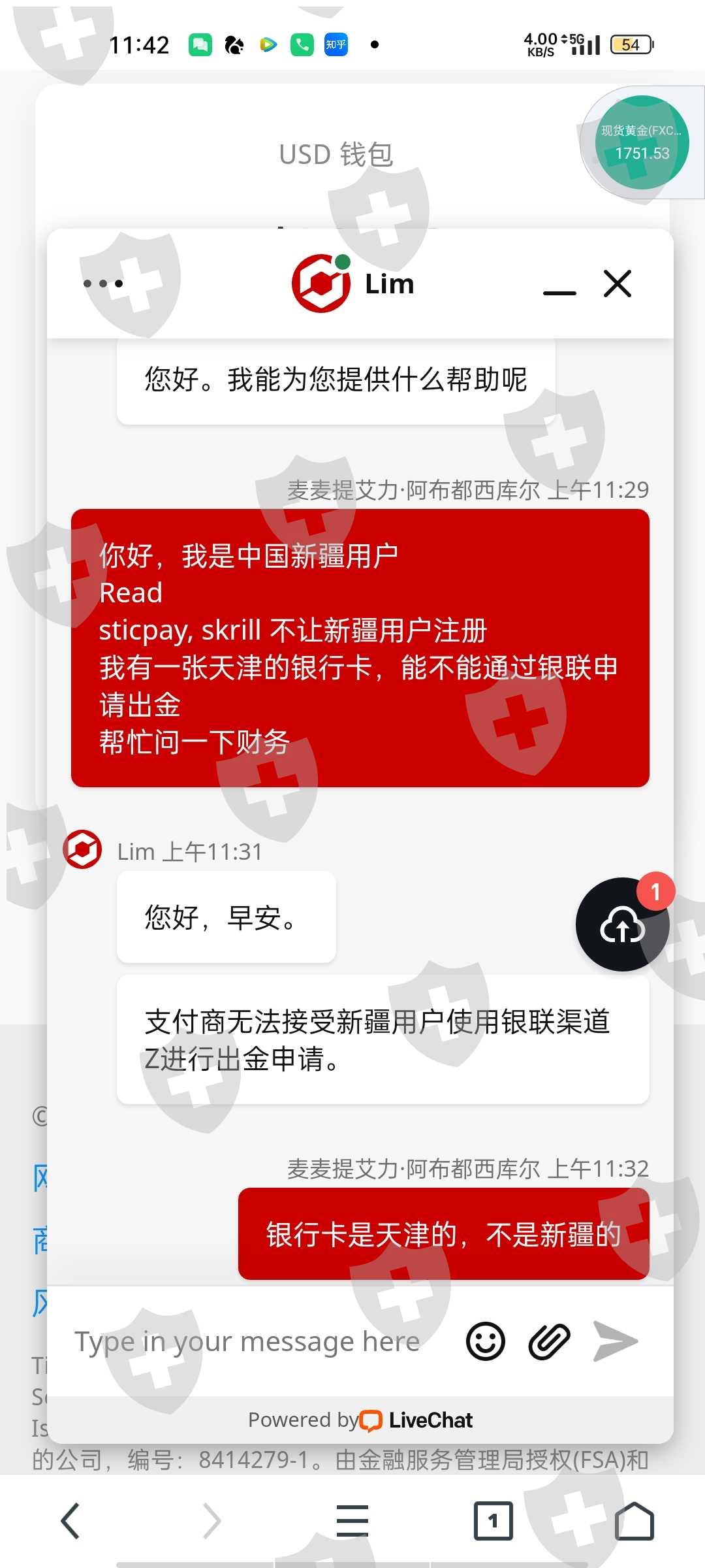 平台称,由于我是中国新疆用户,无法通过中国银联、加密货币等渠道,无法注册skrill, sticpay等国际支付平台。