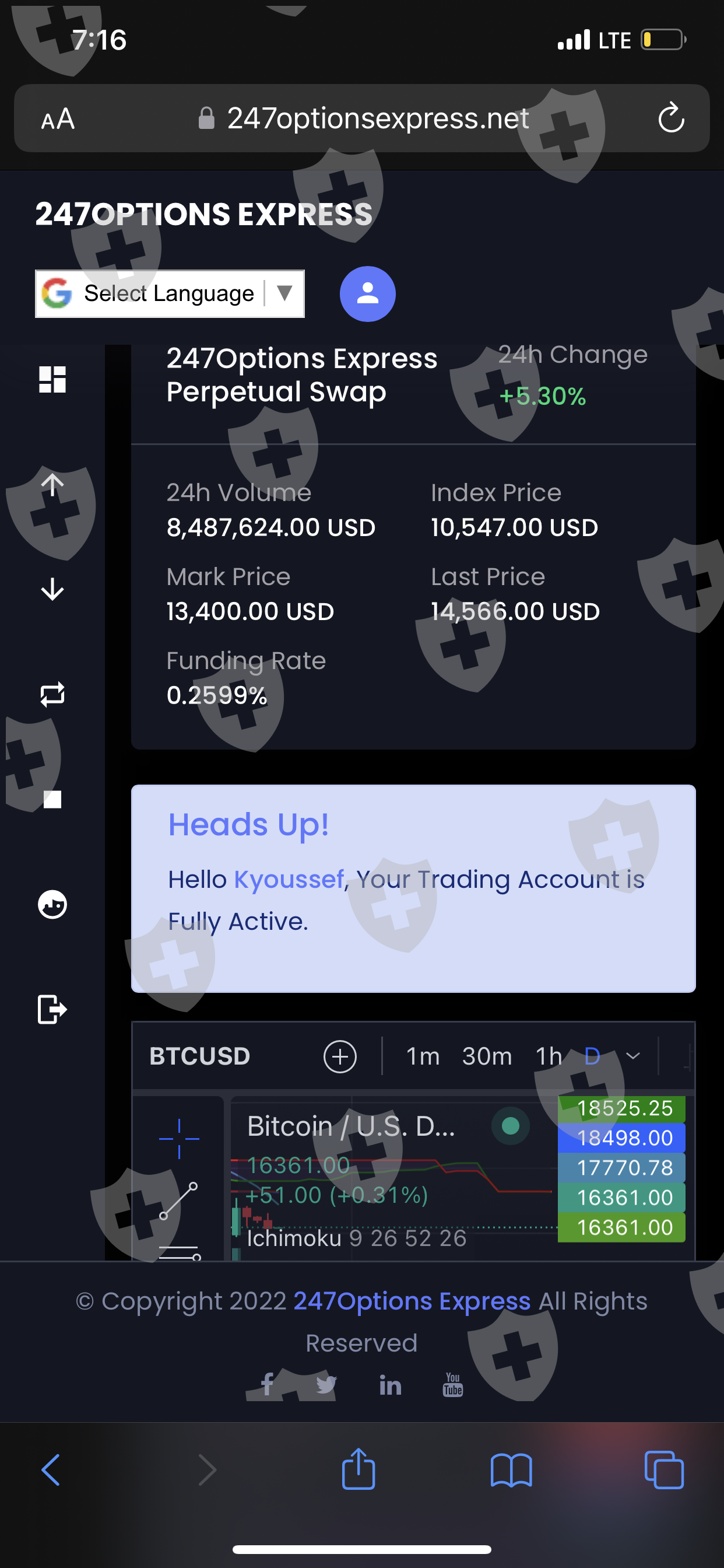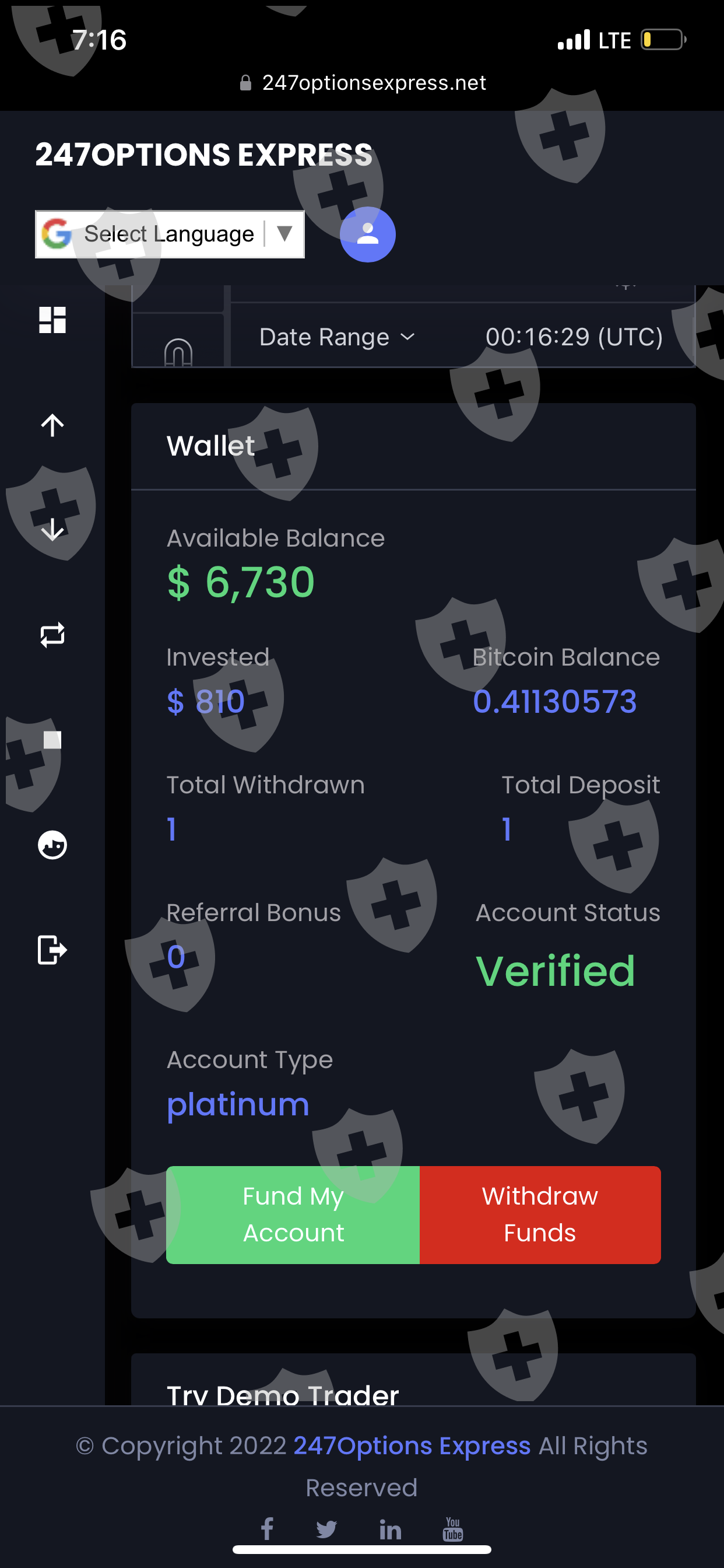 我先与一位经理交谈,他是来自美国 ticktock 的 Erick Robinson。我开始使用 24Options Express 进行交易。首先我存入了 300 美元,5 天后利润为 3200 美元,所以他们要求我通过存入 500 美元将我的账户升级为白金账户,以便能够提取利润,所以我存入了存款。一周后利润是6730$,所以提款的时候他们要求800美金的税费进我的国家,所以我压力很大,所以我做了存款。所以到现在为止我的存款是 1600 美元。然后他们要求 1000 美元的佣金,所以我意识到他们是骗局。我使用 crypto.com 和 ndax 钱包将比特币转移给他们。在谷歌搜索到更多信息时,我发现到这家公司是一个骗局,他们在支付了他们要求的所有费用后不会提取我的利润。我使用 WhatsApp 从他们的网站上与经理和公司号码聊天。