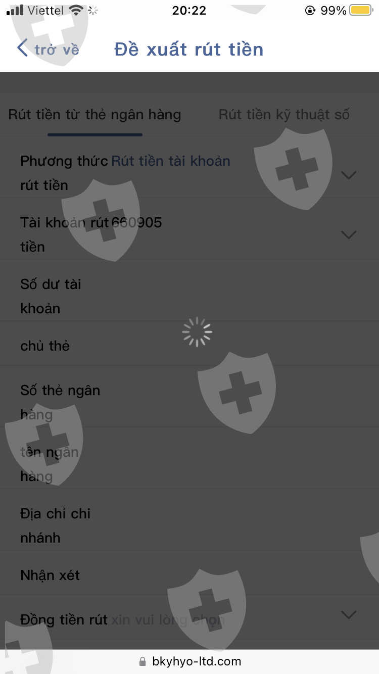 tôi không thể rút tiền từ tài khoản bkyhyo