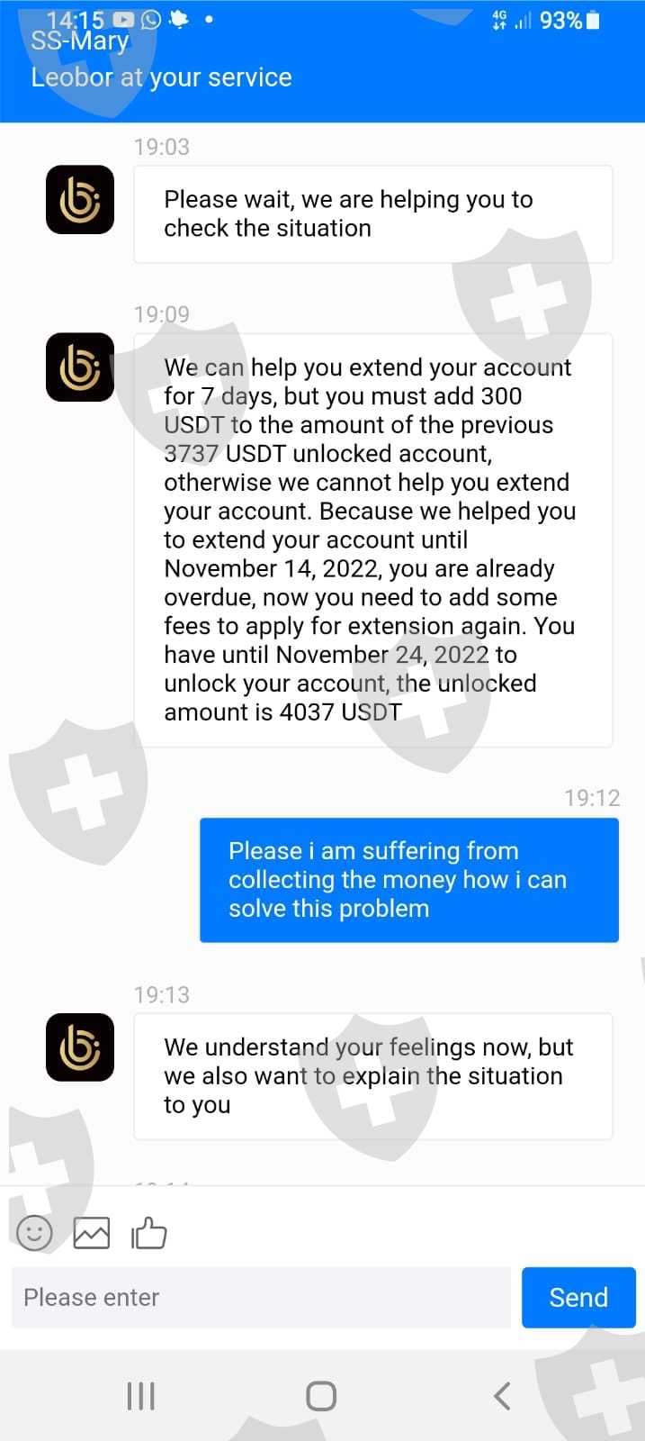 Yesterday I coated with leobor customer service they extended the time to pay for 7 days but ask for 300$ more now they need me to pay 4037$ to activate my account