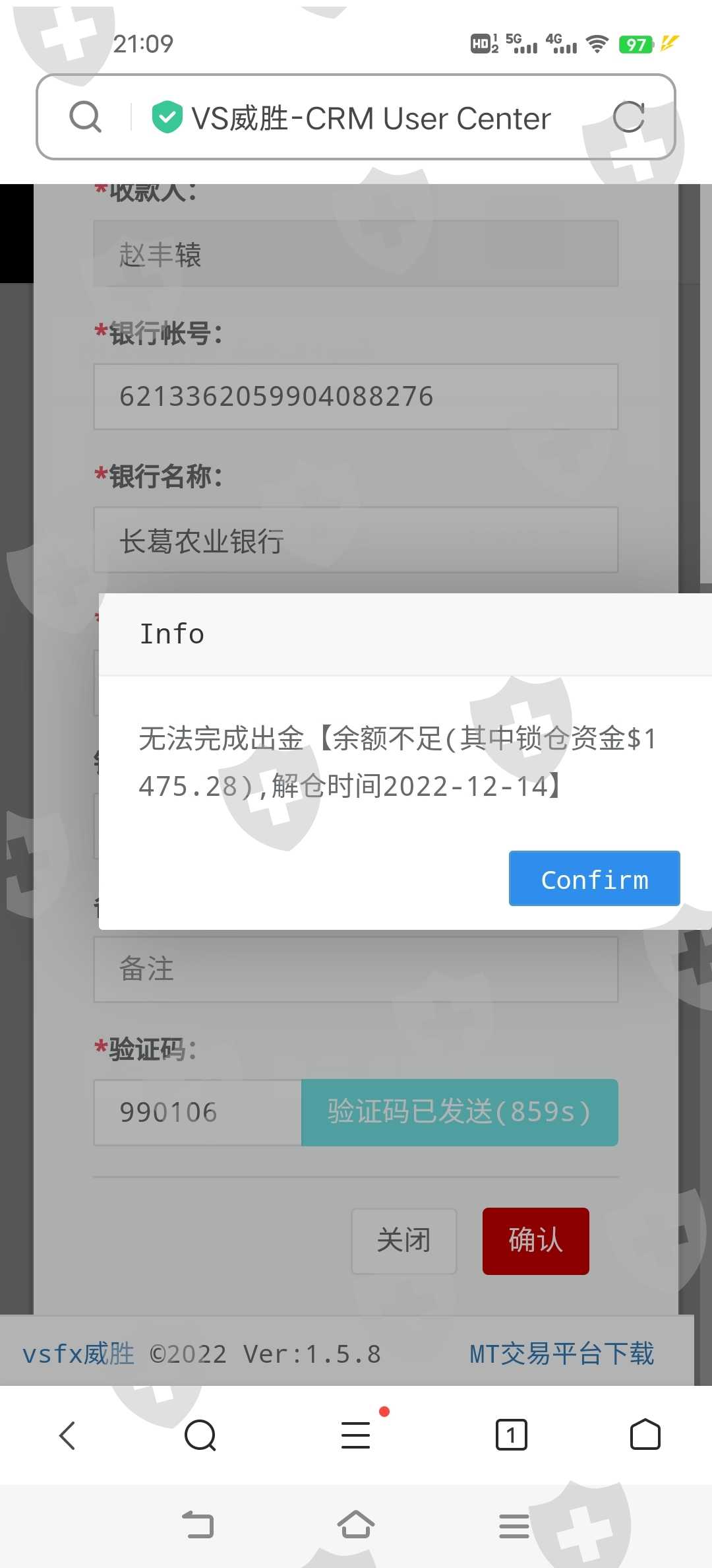 邦德七月底无法出金,一直拖到九月中旬,说换券商,资金转到威胜,一直到现在十一月二十二号还是无法出金,已报警取证