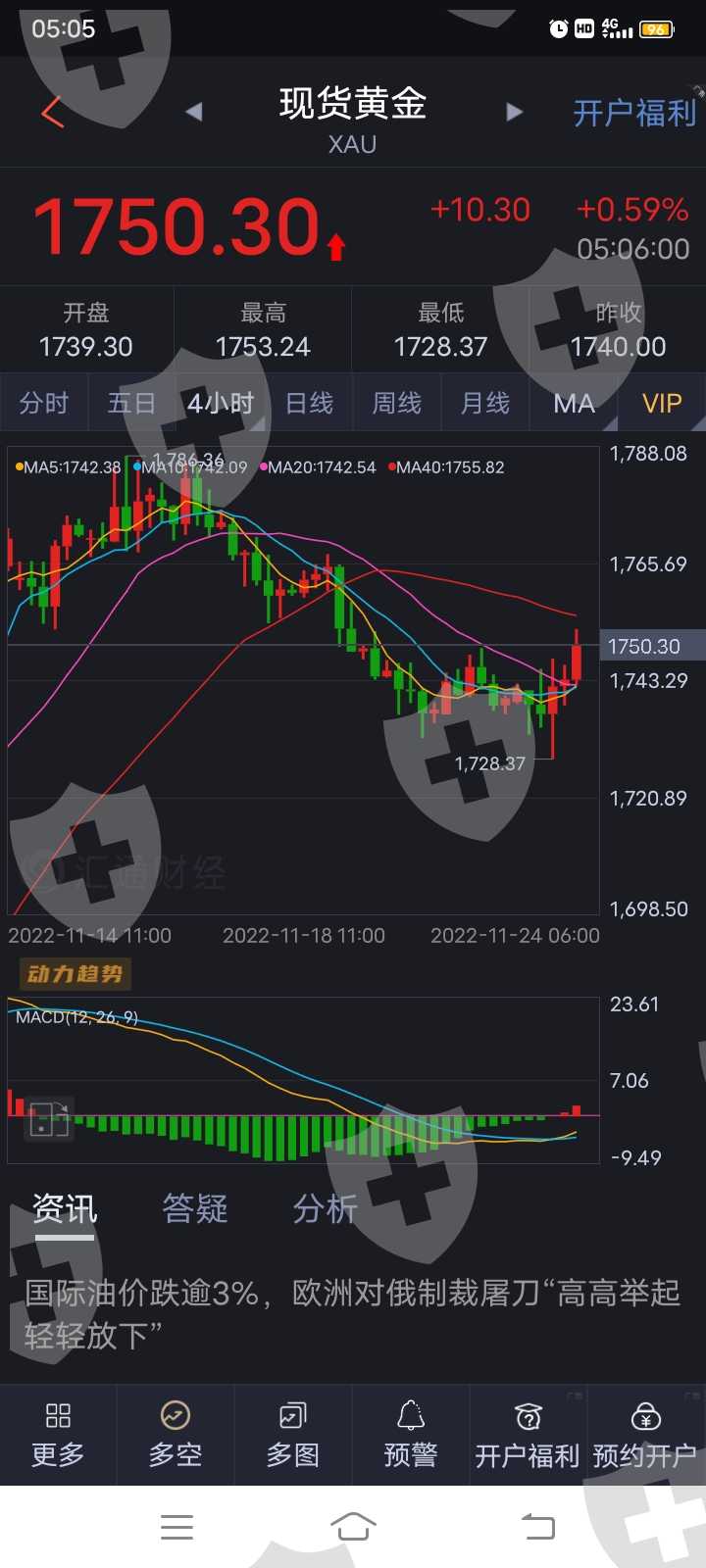 2022.11.23日当天汇胜黄金价格和其他平台都不一样,严重滑点