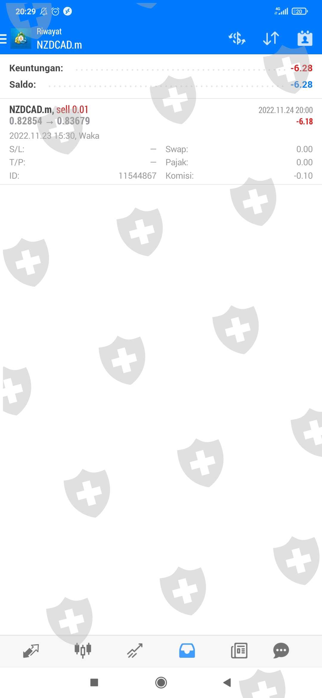 tiba tiba transakai close sendiri pada jam 20:00 mt4 server, di harga 0.83679 , pdhal harga pada saat itu tidak sampai ke harga 0.83679, ok mungkin saat itu spread melebar, namun saya tidak pernah merasa menutup transaksinya, dan saya coba cek di jurnal mt4 tidak ada catatan close trade pada saat itu, ini sqngat di sayangkan apalagi MIFX adalah broker besar yang legal , saya coba bandingkan grafik di MIFX dengan chart di mt5 demo, sangat beda sekali pada pukul 20:00 tgl 24 nov 22 di pair NZDCAD