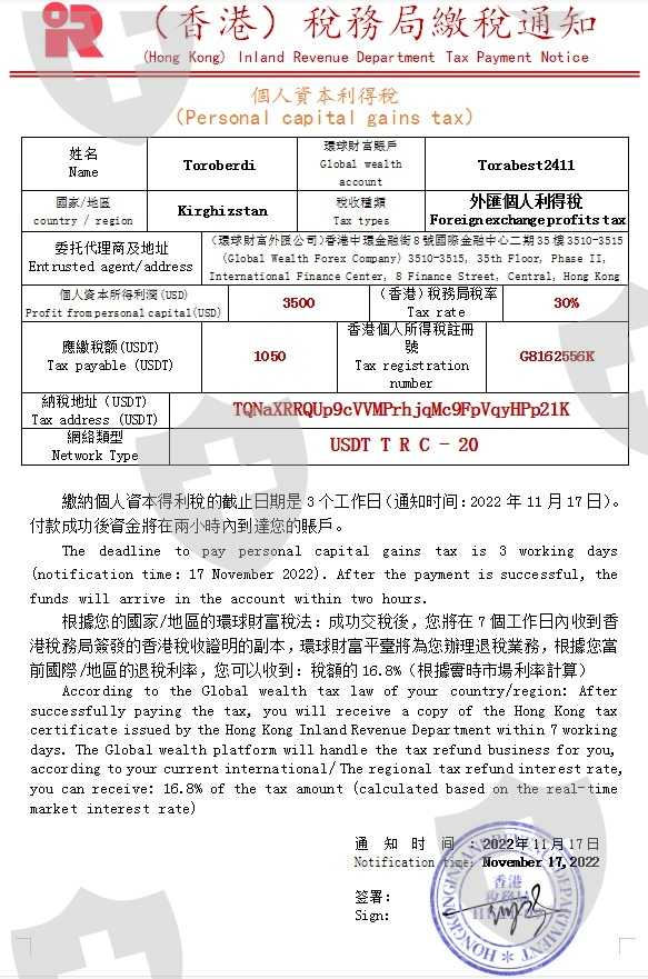 有个抖音妹子给我发短信,让我换成whatsapp,我们继续在那里聊天,然后她说她在投资某个平台,说我也跟着她,我什么都答应了,然后我们一起投资,过了一个一个月我已经有$51998,我想取$3500,平台让我交税,我交了$1050,他们没有给我$3500,他们说我的账户发现非法投资,我必须入金5198 美元,我没钱了,我认为这是一个骗局平台,没有存款。我不知道该怎么办,我要回我的钱。