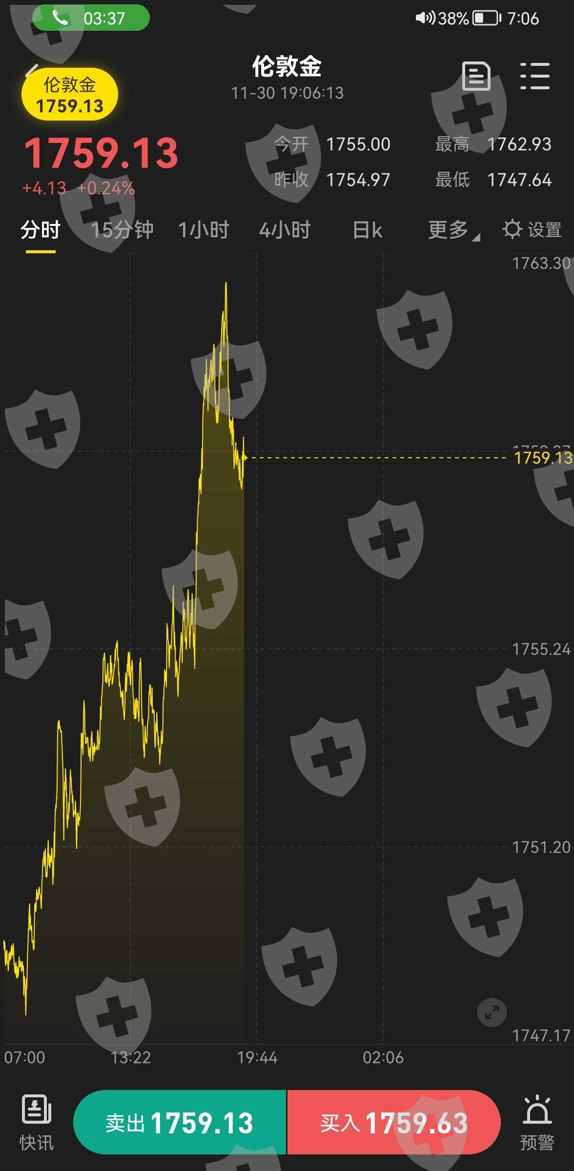 我设的止损点位是金价1763,当时高位是1762.93,结果把我仓扫了