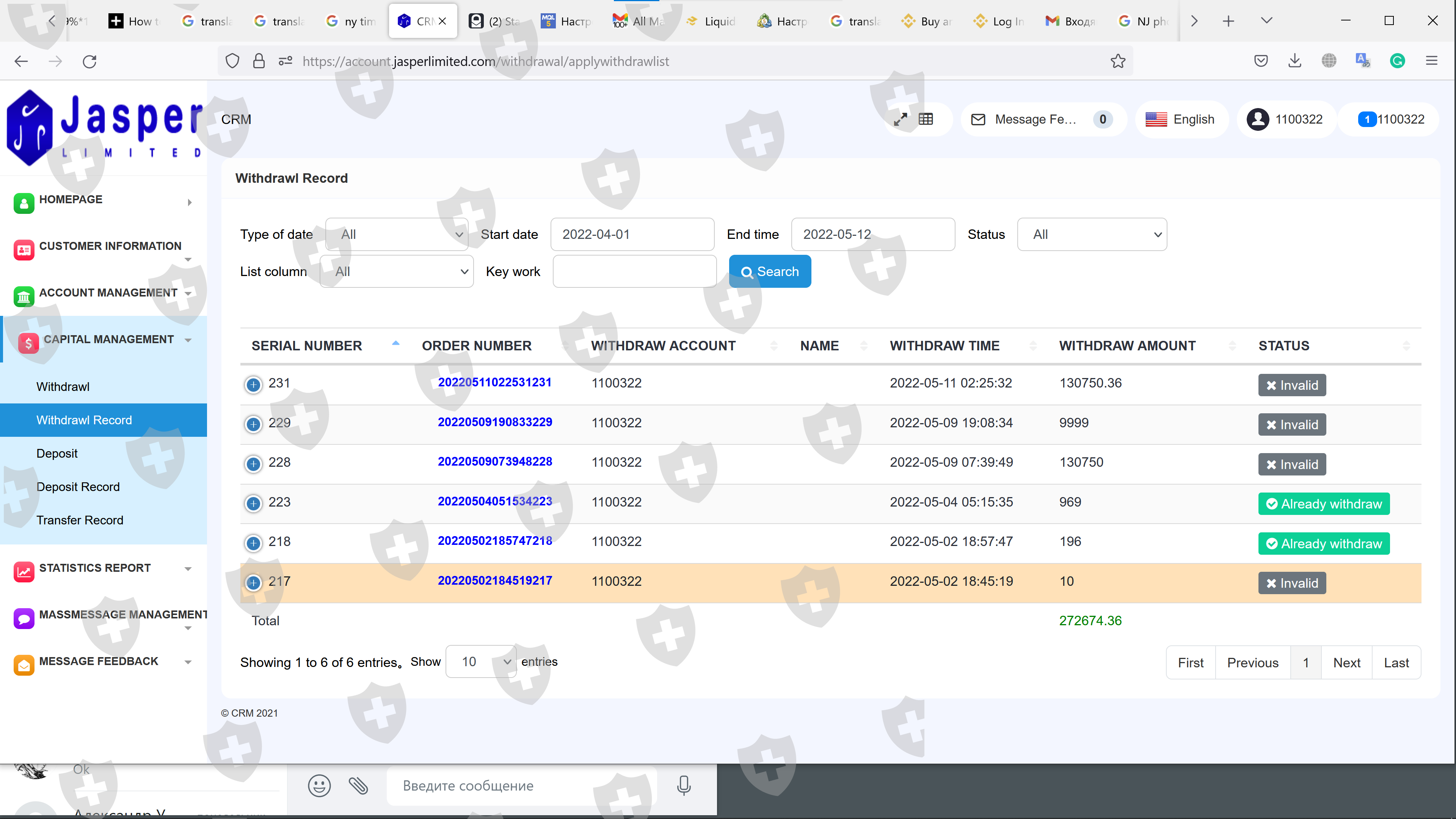 我在Jasper Limited赔了很多 - 144,000 美元(100,000 美元)。我将我的加密货币转移到 jasperlimited.com 以通过 mt5 (metatrader5) 进行交易。来找我的骗子叫janice liu。他们来自 linkedin 平台。在我接受邀请后,他们问我是否可以在 whatsapp 中交谈。当我尝试并要求我再向他们发送本金的 50% 以退还我的钱时,他们没有退还我的钱。之后我试图找到一家恢复公司,并认为它会有所帮助。我和他们一起损失了 14,000 美元(包括在 144,000 美元的金额中),他们要求我寄更多的钱来结束交易。现在 Jasper Limited网站打不开,我在他们按照美国 nfa 法规欺骗我后向他们索赔,他们的注册 ID 是 0544365。