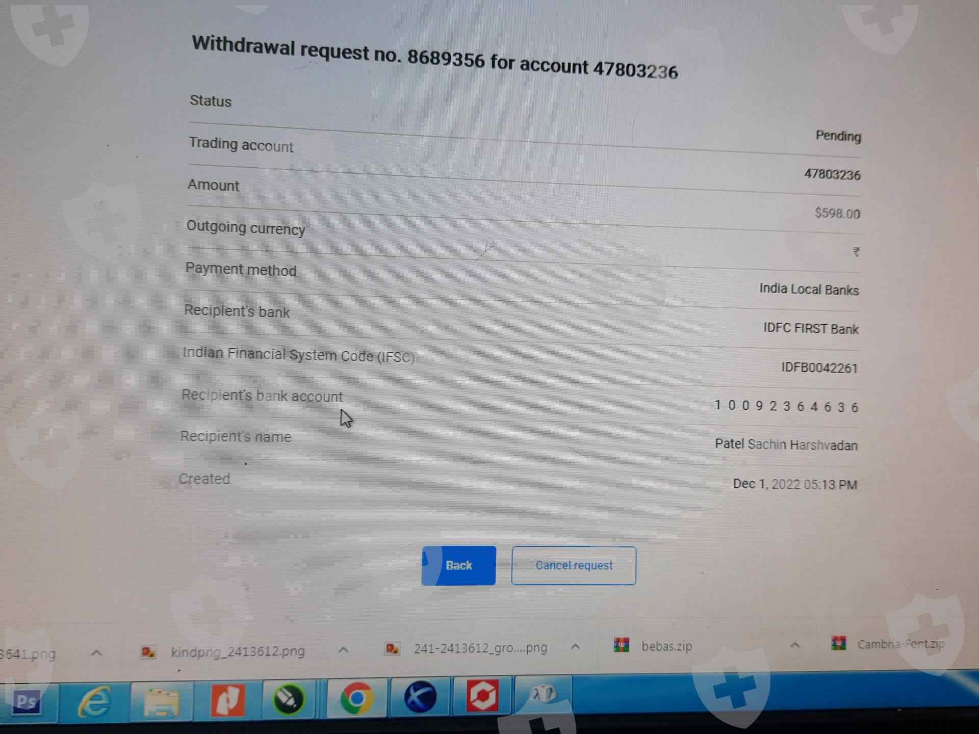 我在4天前进行了598美元的提款,但到现在还没有收到,请解决我的问题。