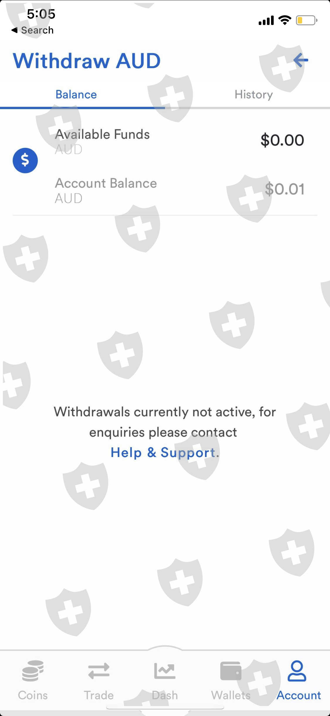 unable to withdraw