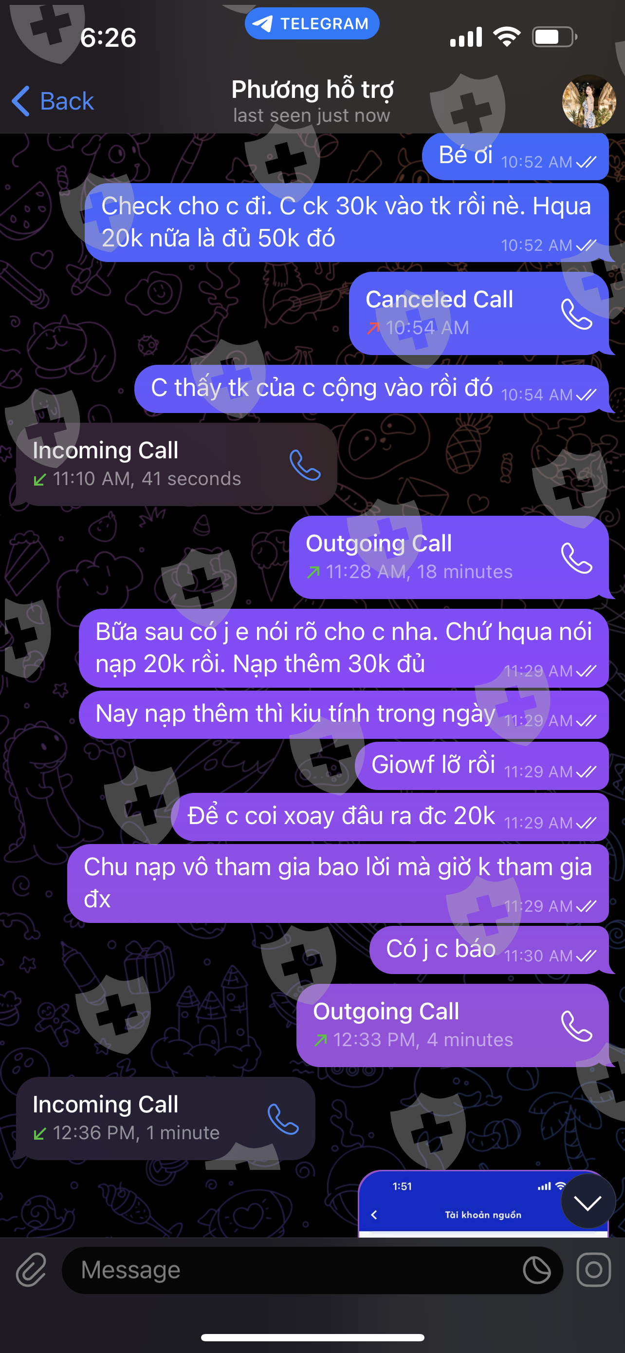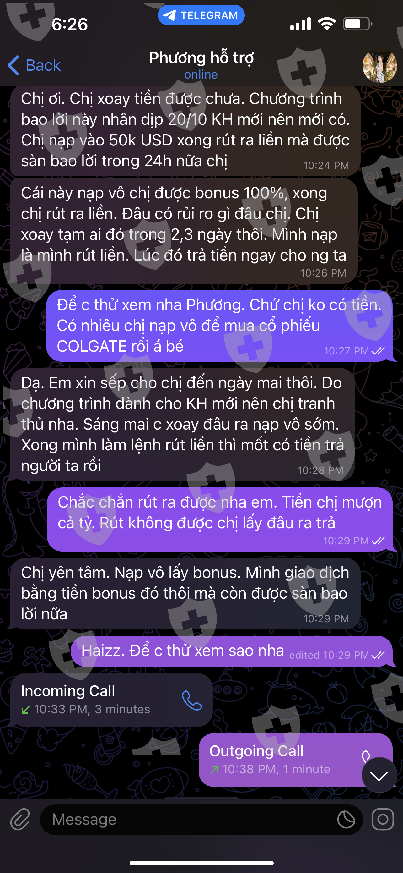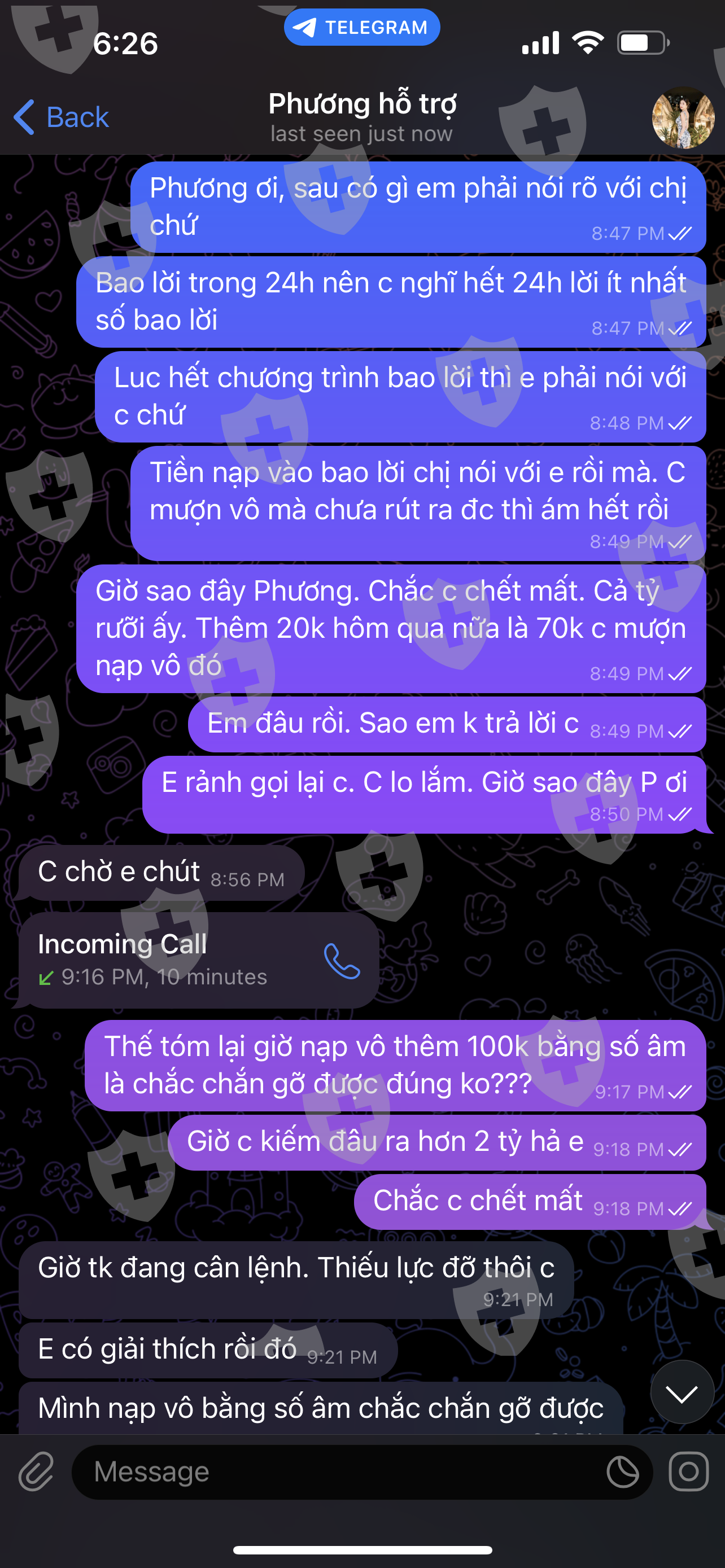 IB ban đầu giới thiệu các chương trình khuyến mãi về bonus và phí để mình nạp tiền, theo đó IB nói là nạo lấy bonus và được tham gia bao lời trong 24h nên chắc chắn ko lỗ. Tuy nhiên sau khi lời mấy lệnh đầu, lệnh sau bị lỗ vs số lot lớn. Hỏi lại IB thì báo là khi đạt tỷ lệ lời là hết chương trình, tuy nhiên lúc hết mà không báo nên âm luôn qua phần vốn nạp vô. Sau đó IB báo nạp tiền vô bằng số tiền đang âm thì chắc chắn gỡ được. Cam kết là sẽ được nhưng nạp vô từng nào âm từng đó. IB cứ cắt 1 đầu. Đến khi âm gần hết thì mới cân lệnh. Số lượng lệnh thì rất nhiều. Mỗi mã 3,4 lệnh. Mỗi lệnh đến 100 lot. Với số lượng lớn như vậy chắc chắn cháy tk vì không phù hợp với vốn. Tôi đã báo với IB rằng tôi mới chơi, chưa quen với thị trường và IB đã dẫn dắt tôi cháy tài khoản. Còn khuyến khích tôi vay mượn để bỏ vào gồng lệnh. Đến khi không vay được thì hù rút bonus cho cháy tk luôn!!!! Nên tránh xa IB và sàn cố tính đánh cháy tk KH như vậy