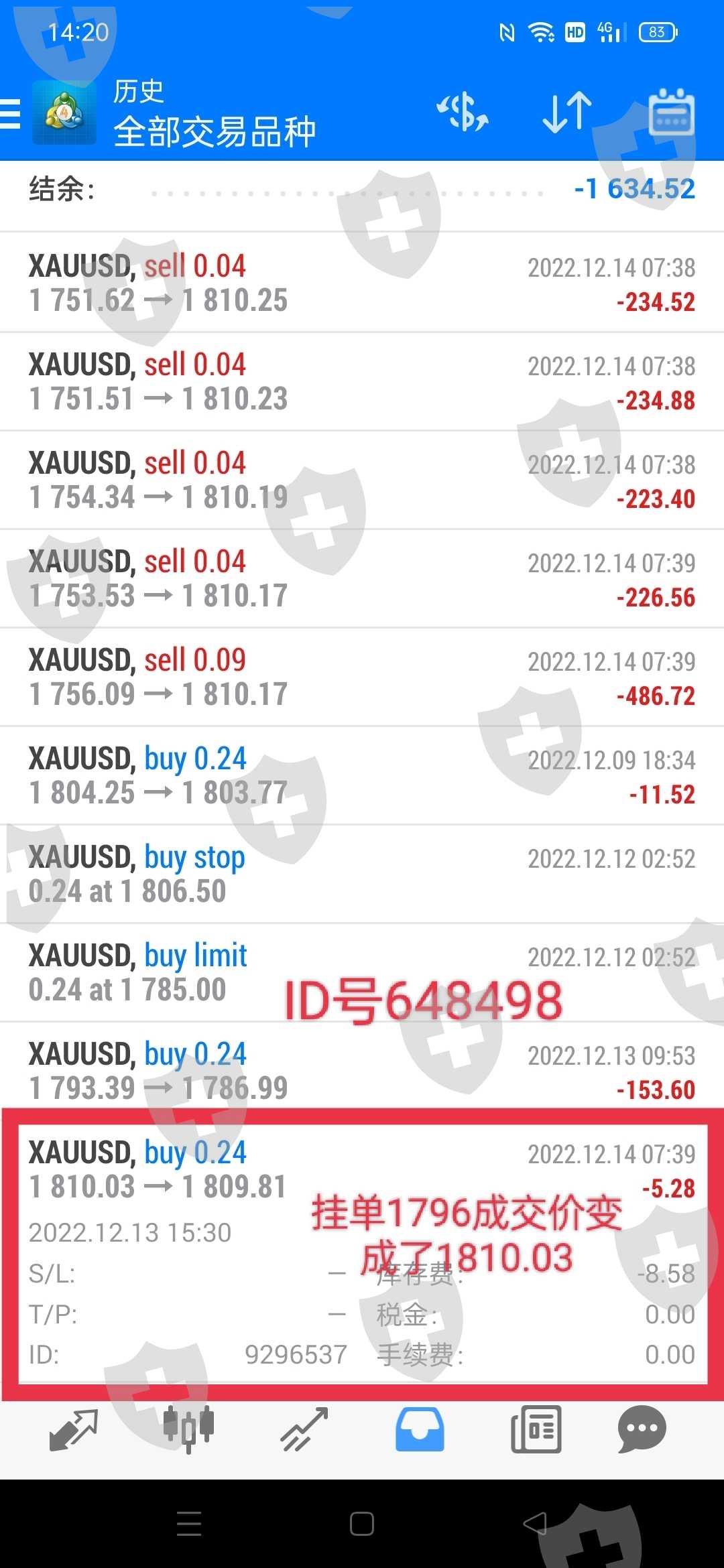 12/14号做的黄金,1796点位锁单,成交价1810了,滑了14$的点位,去平台上申请补偿不给处理,说不赔付,对比别的平台滑了4$左右,这滑了14$,太夸张了吧,而且不止出现一次滑点情况