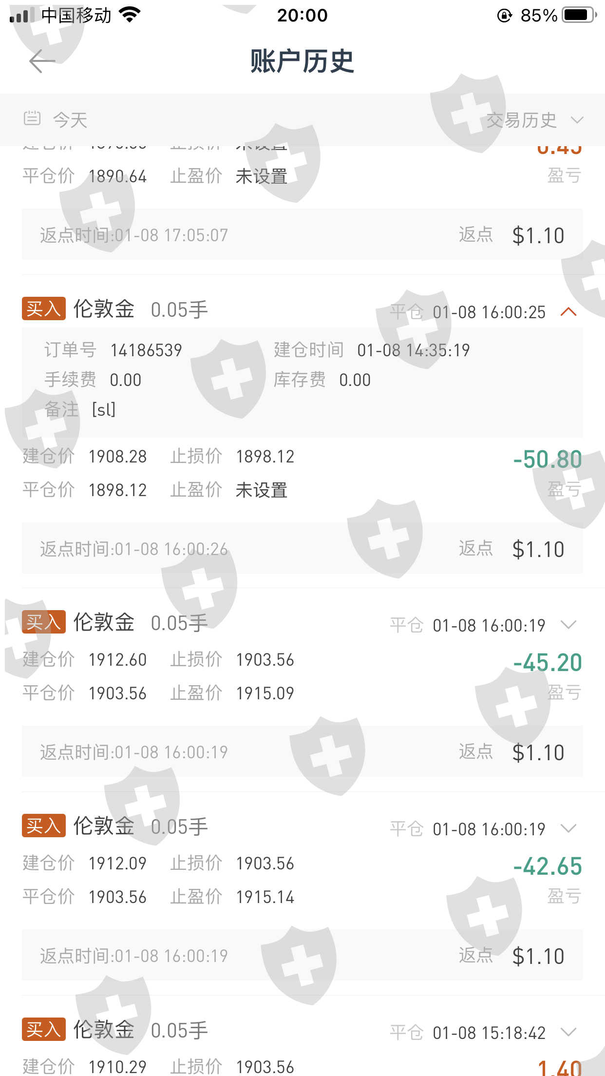 本人与朋友一起在金荣中国开了交易帐户,出于对交易的谨慎,每次手动交易入仓后都会设置止损,但是竞然会暴仓,仔细看了当时的走势,不是一步到位的恶劣行情,确会造成暴仓,严重怀疑是平台吃了,投诉到公司,让他们把交易流水给我,他们不但给不了,还说是正常的。如果是正规的交易机构,对接的交易银行或机构一定会有交易去向吧,投诉到其他门部都得不到解决,投诉无门。慎重选择这样的平台,坑人的。