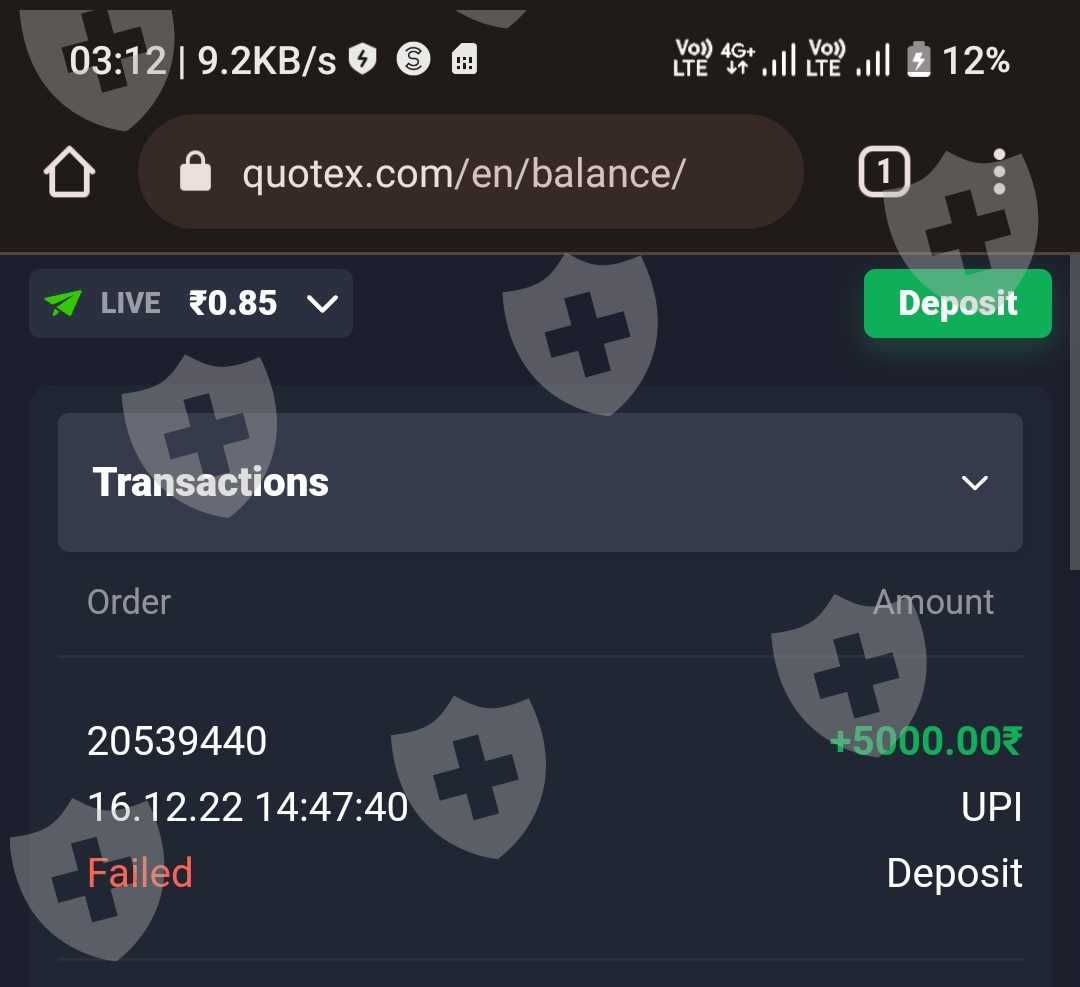 我一直在用QUOTEX。 12月16日,我通过UPI 在我的账户上存入5000 印度卢比到QUOTEX交易账户,钱从我的银行账户中扣除,但却没有记入我的交易账户......我联系了客服团队,但他们没有回复。我给他们写了很多次电子邮件,但根本没有回复,但今天他们给我发了电子邮件我的帐户已被禁止,因为我联系了他们......黑交易商......请帮助我