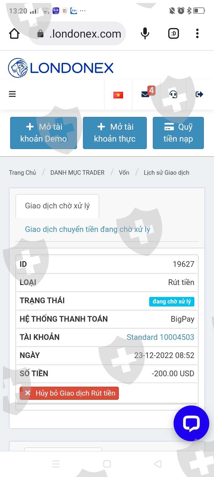 ngày 23.12.2022 tôi có đầu tư 1500 usd vào sàn londonex, đến ngày hôm qua ko thấy tiền về như họ đã hứa là tối 22.12 trả tiền, tôi có nhắn tin nhờ hỗ trợ thì lập tức bị họ xóa khỏi nhóm và ko trả tiền cho tôi, cũng như hỗ trợ tôi. có phải tôi đã bị lừa đảo không