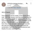 cryptocoin代理骗我存入100美元并承诺在24小时后为我付款。付钱后。他们说我必须支付我收益的15%的佣金,即1000美元。从那天起我没有拿回我的钱.