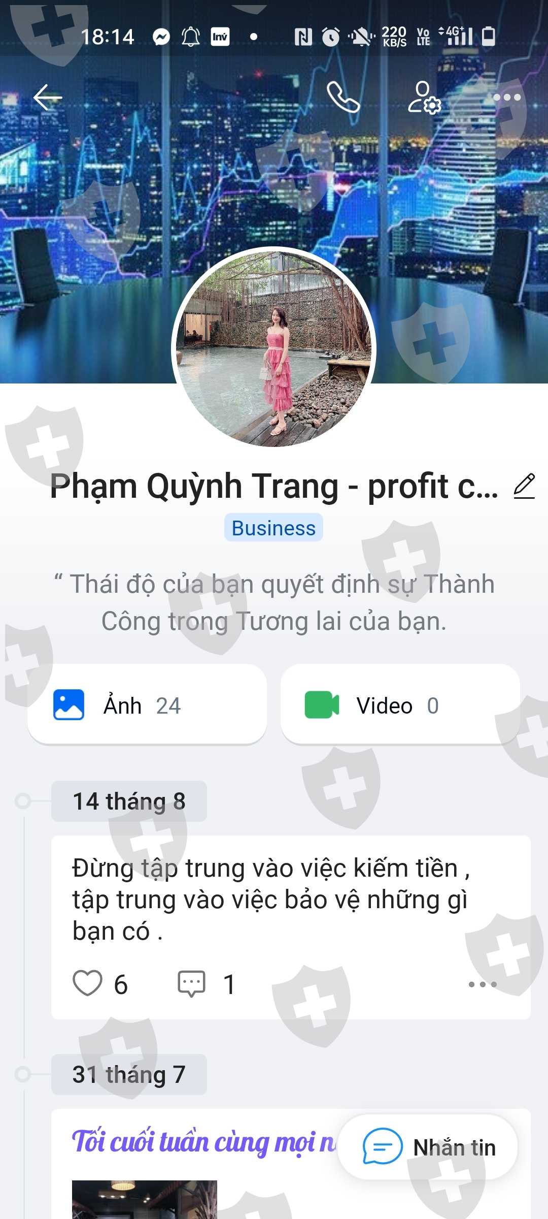 họ có rất nhiều chim mồi đi săn, để những nguời đầu tư mới như chúng tôi sập bẩy, họ tạo ra cái giao dịch nhất quán với phuơng châm vốn càng cao lợi nhuận càng nhiều, đến khi thấy chúng tôi không còn vốn để thêm vào thì họ tạo ra 1 giao dịch với lợi nhuận cao hơn tiền vốn rồi bắt chúng tôi nạp thêm tiền để chứng minh tài khoản nếu không sẽ khóa tk, bằng phuơng thức này tôi đã bị họ lừa mất đi hơn 4000 đô là. hiện tại tôi kg thể liên lạc đc với ai trong số họ vì họ đã chặn hết mọi thông tin